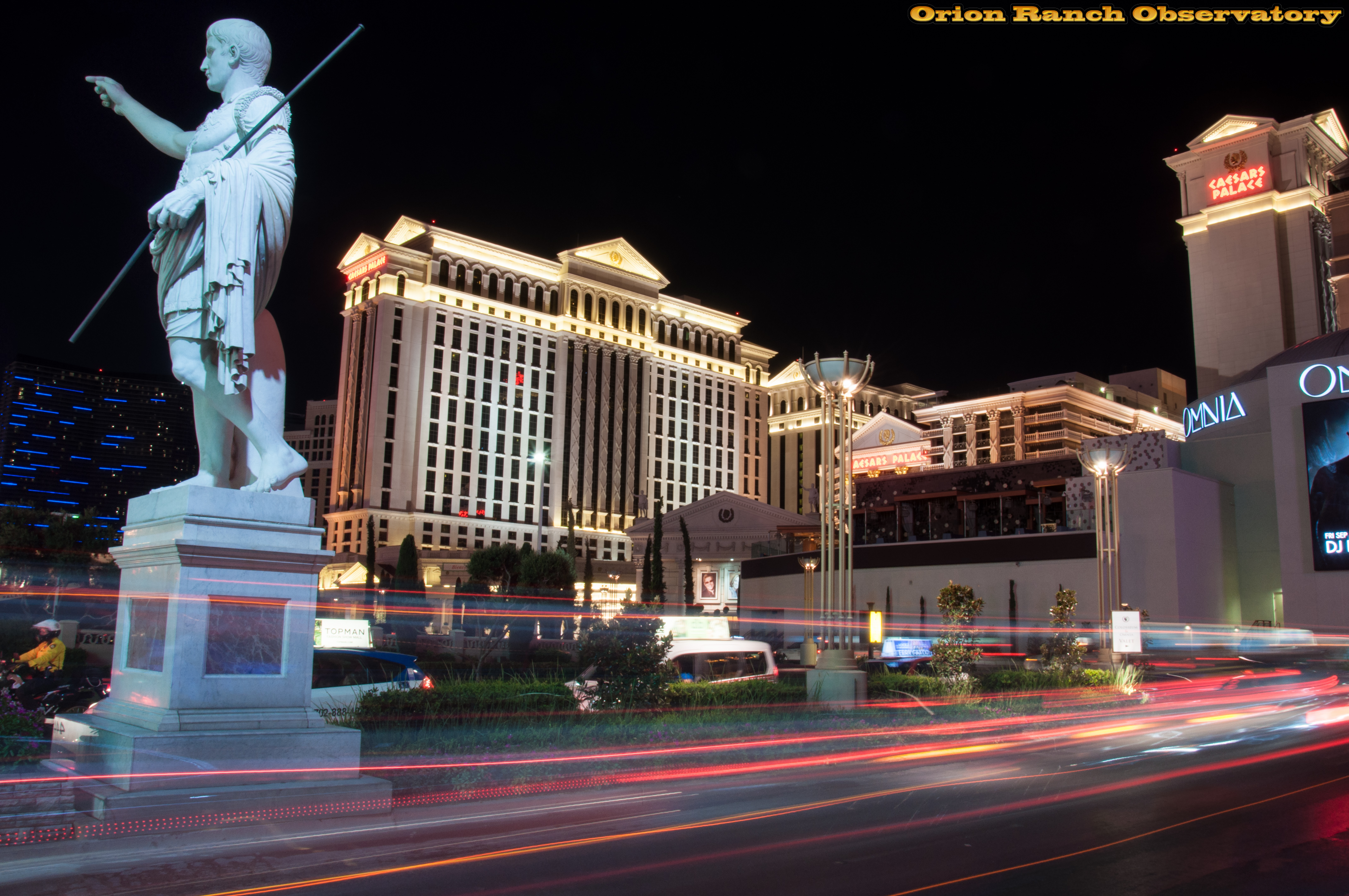 The main driveway in front of Caesar's Palace, with and without taillights.