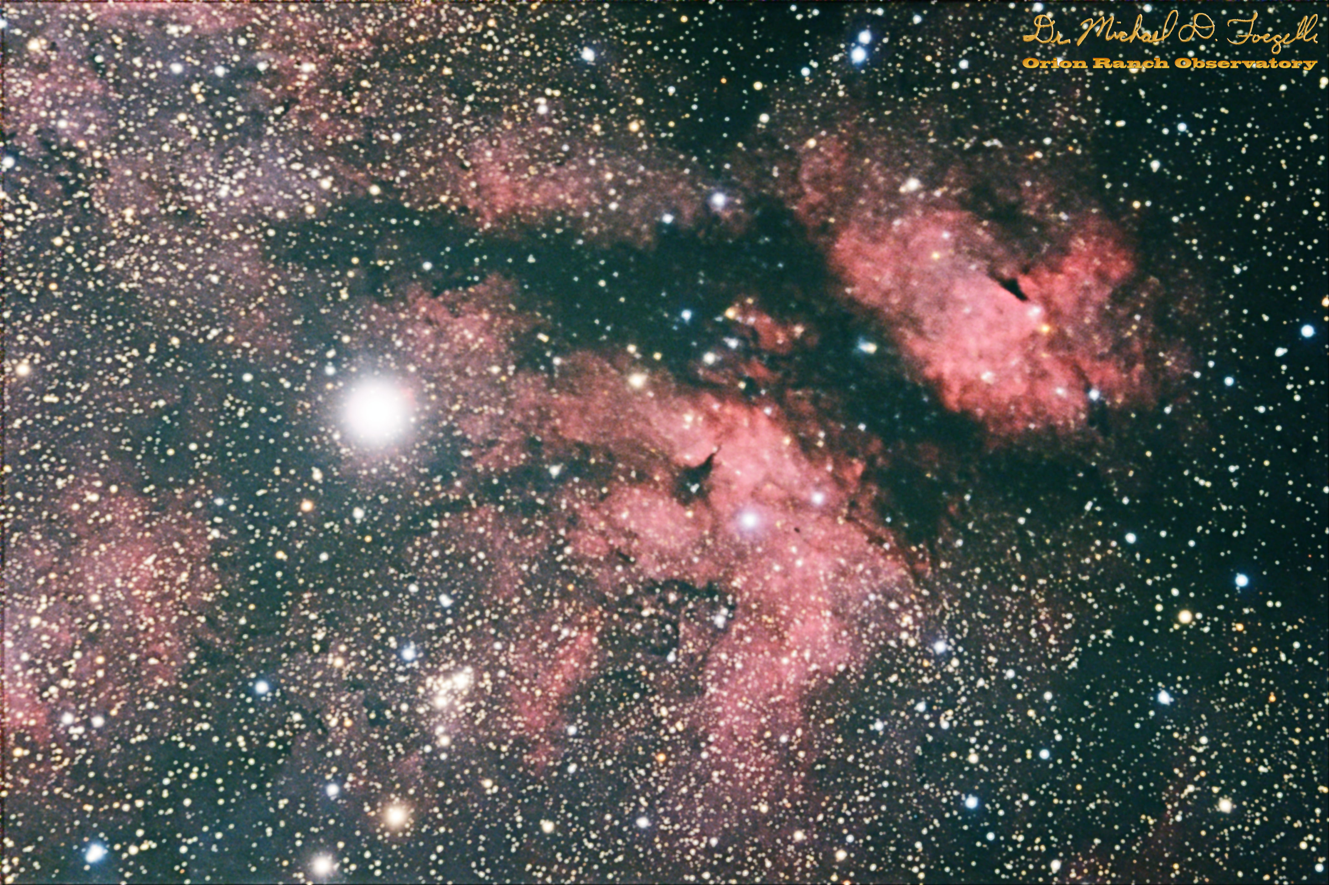 Original Photoshop process of IC 1318, The Butterfly Nebula, with a stack of 18 ten-minute exposures at 1600 ISO on my modified Canon 450D in my cooler box. This was part of my foray into large dim DSOs in the middle of the Milky Way. Lots of stars in the background that are very difficult to minimize. I was never entirely happy with this process, although there's lots of information there.