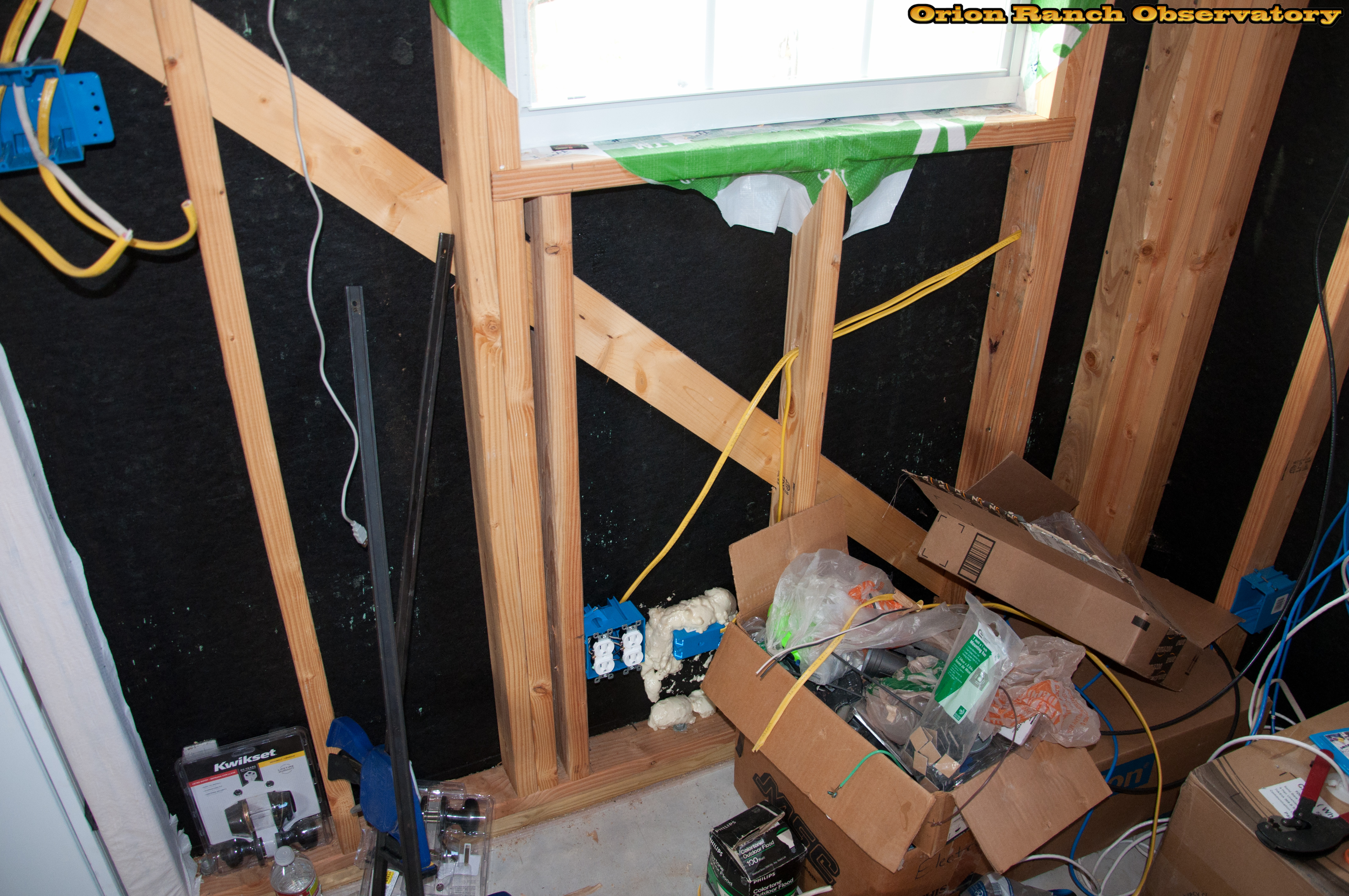 Putting in the outlets for where all teh electronics will go in the warm room, including PC(s), cell booster, etc.