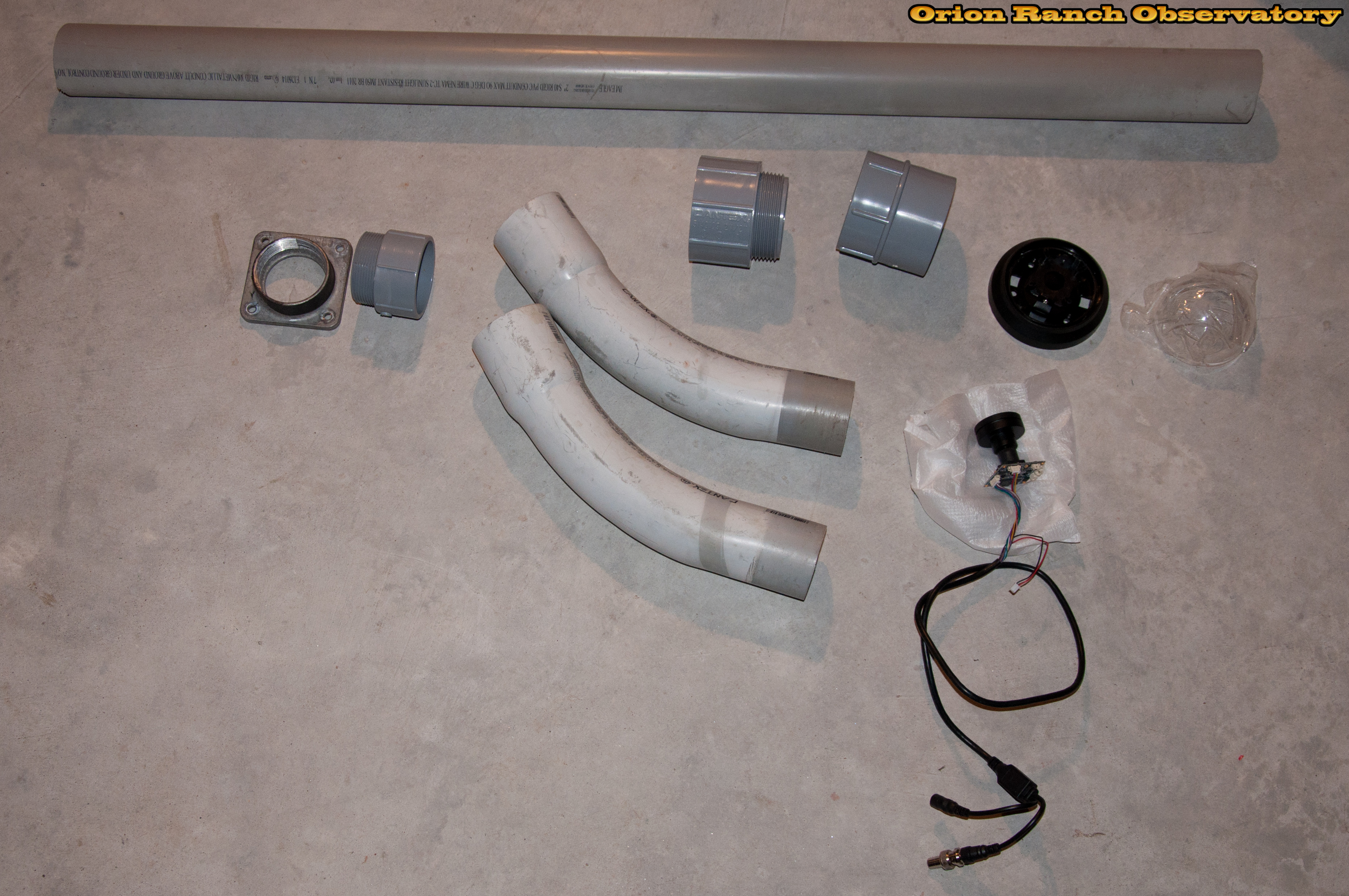 Building a poor man's "almost" all-sky camera from some leftover 2" conduit and couplings, a low lux camera with a wide angle lens, and a cheap plastic dome.