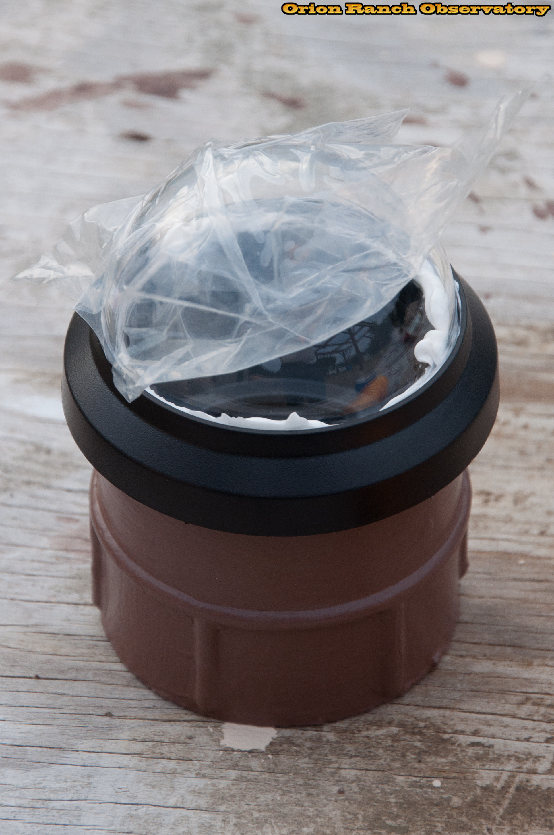 Installing the clear dome on the dome assembly with what will eventually be clear caulk to seal it.