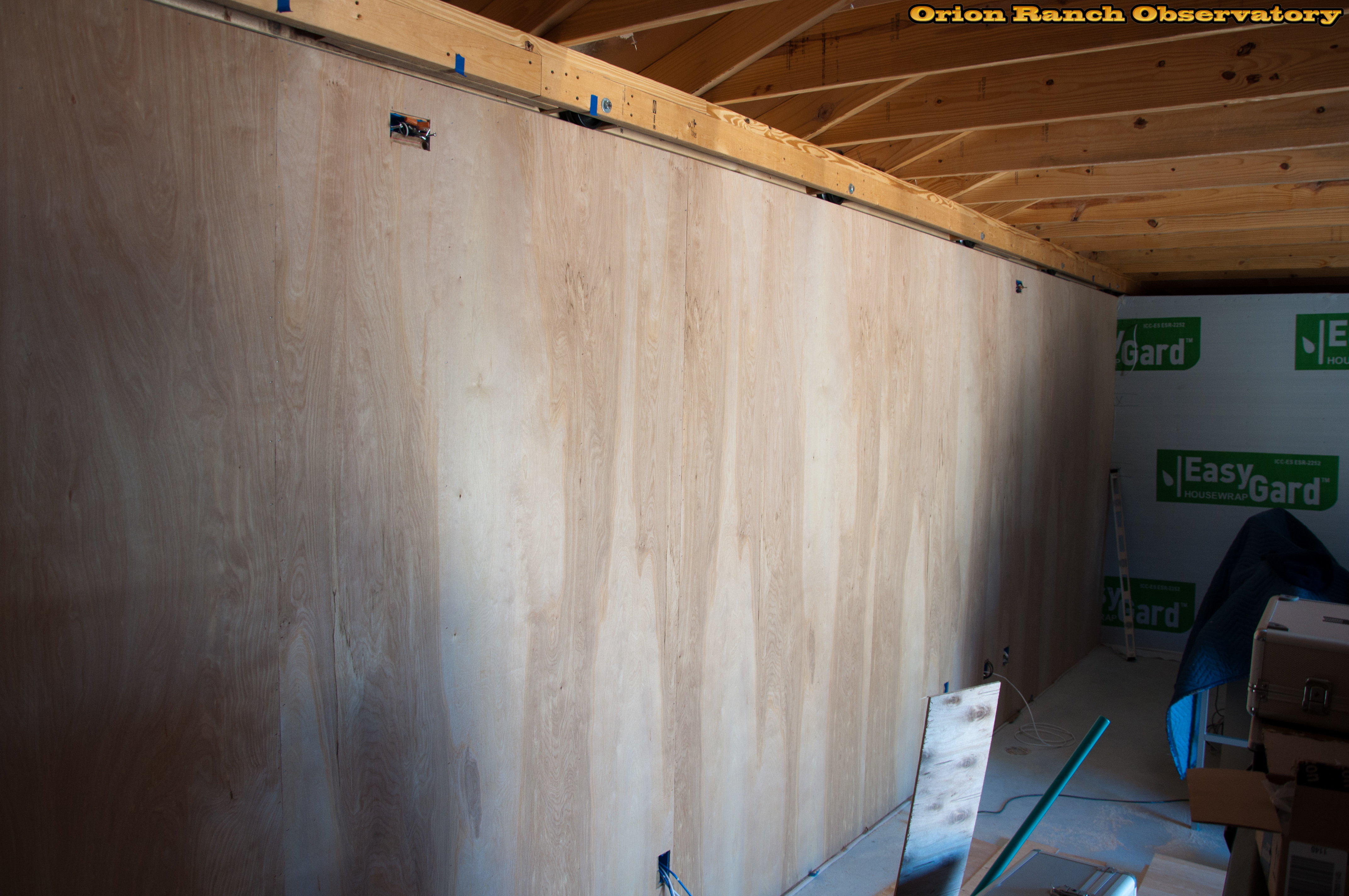 First (west) wall nearly done. All but one narrow piece that will require ripping a sheet in half.