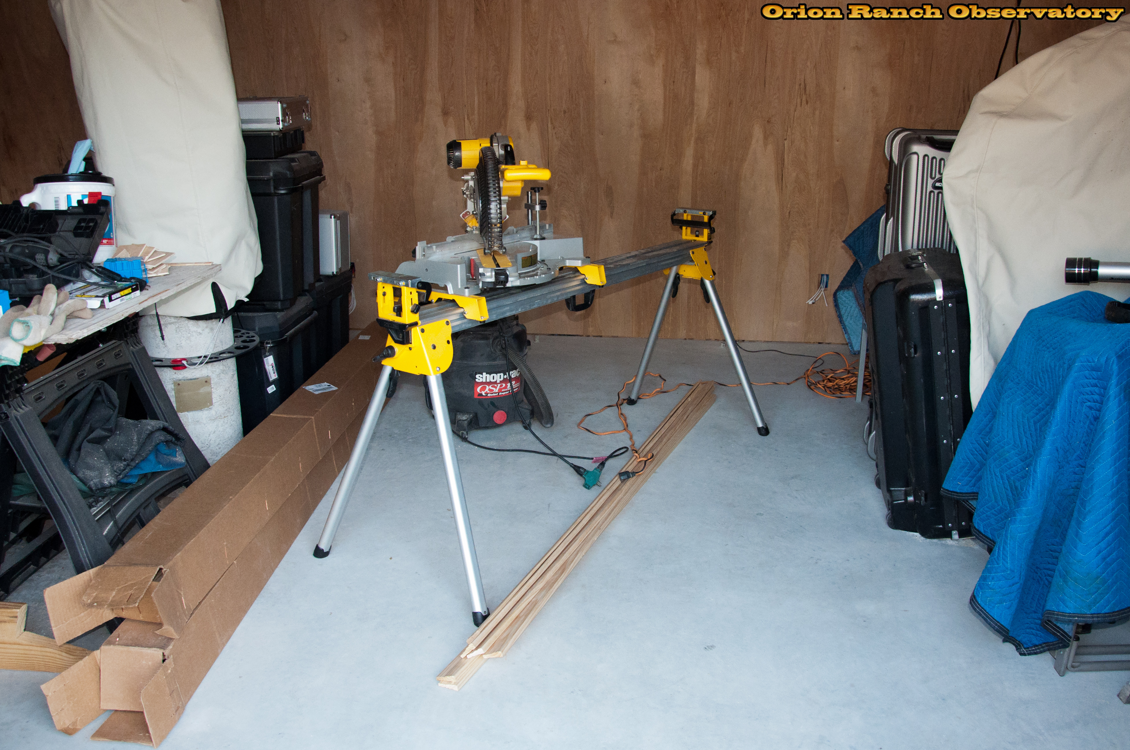 Setting up the miter saw and bringing in all the millwork in preparation for adding trim.