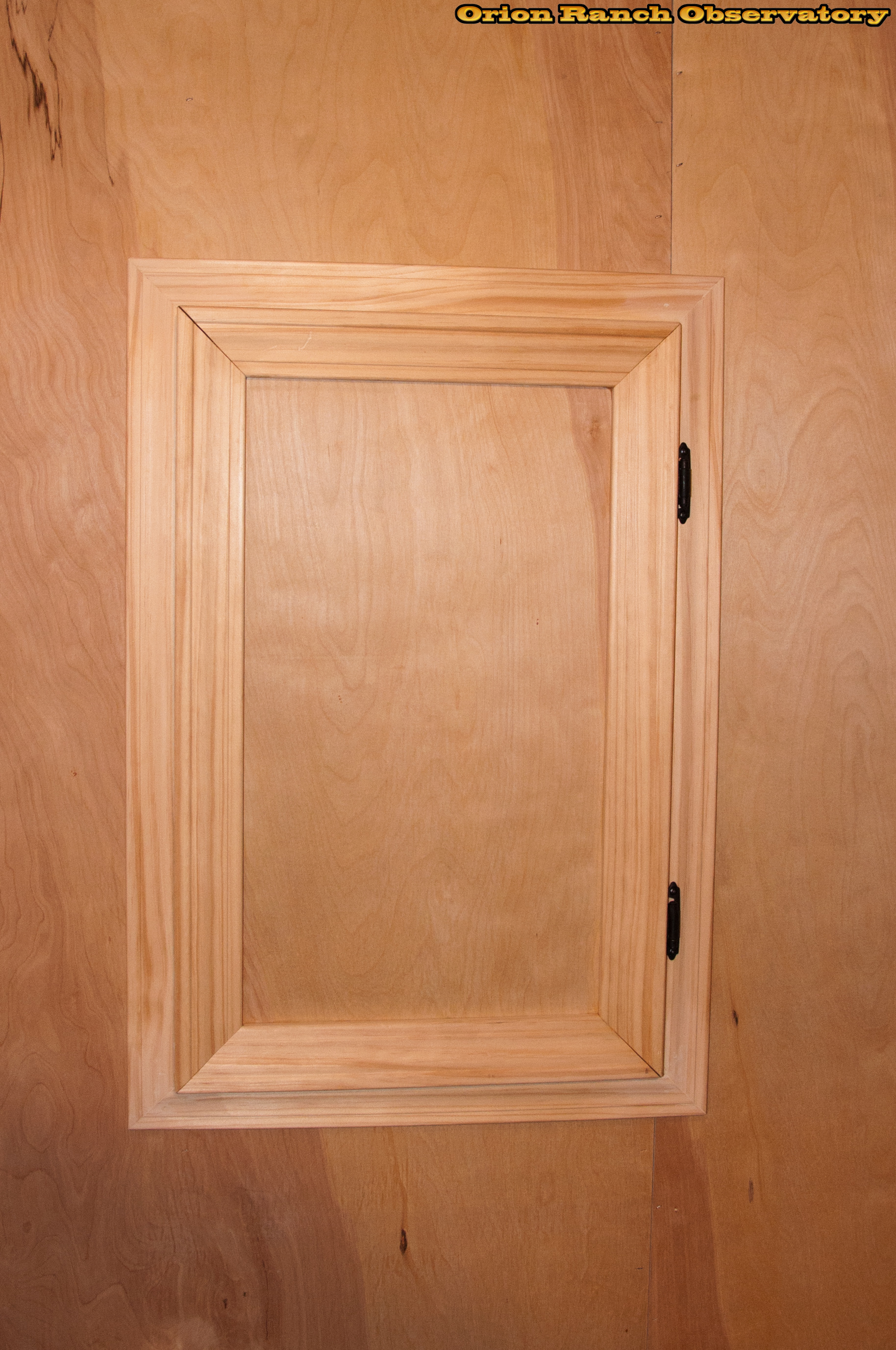 Making a nice trimmed door to cover the breaker box. Used the cutout from the wall sheet that went around the box so the grain matches.