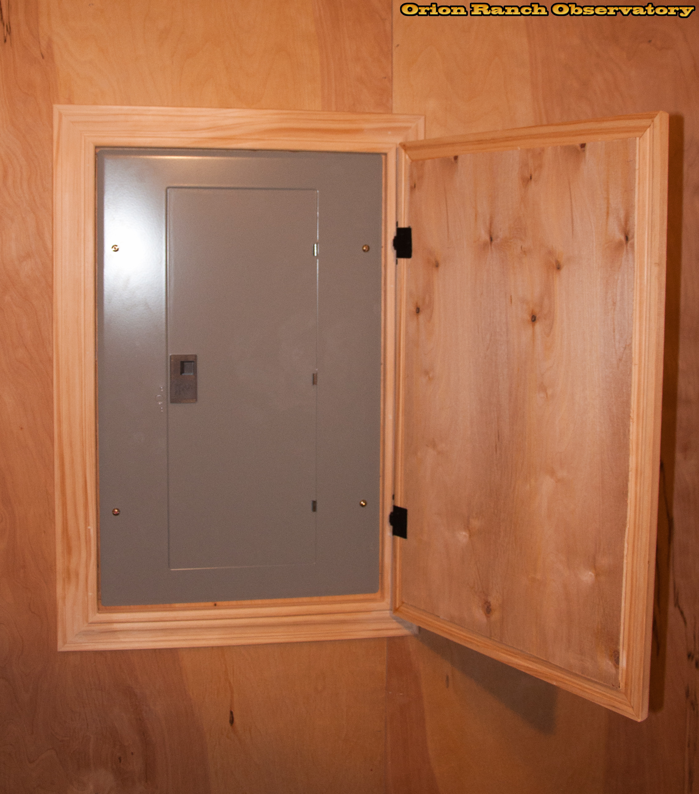 Making a nice trimmed door to cover the breaker box. Used the cutout from the wall sheet that went around the box so the grain matches.