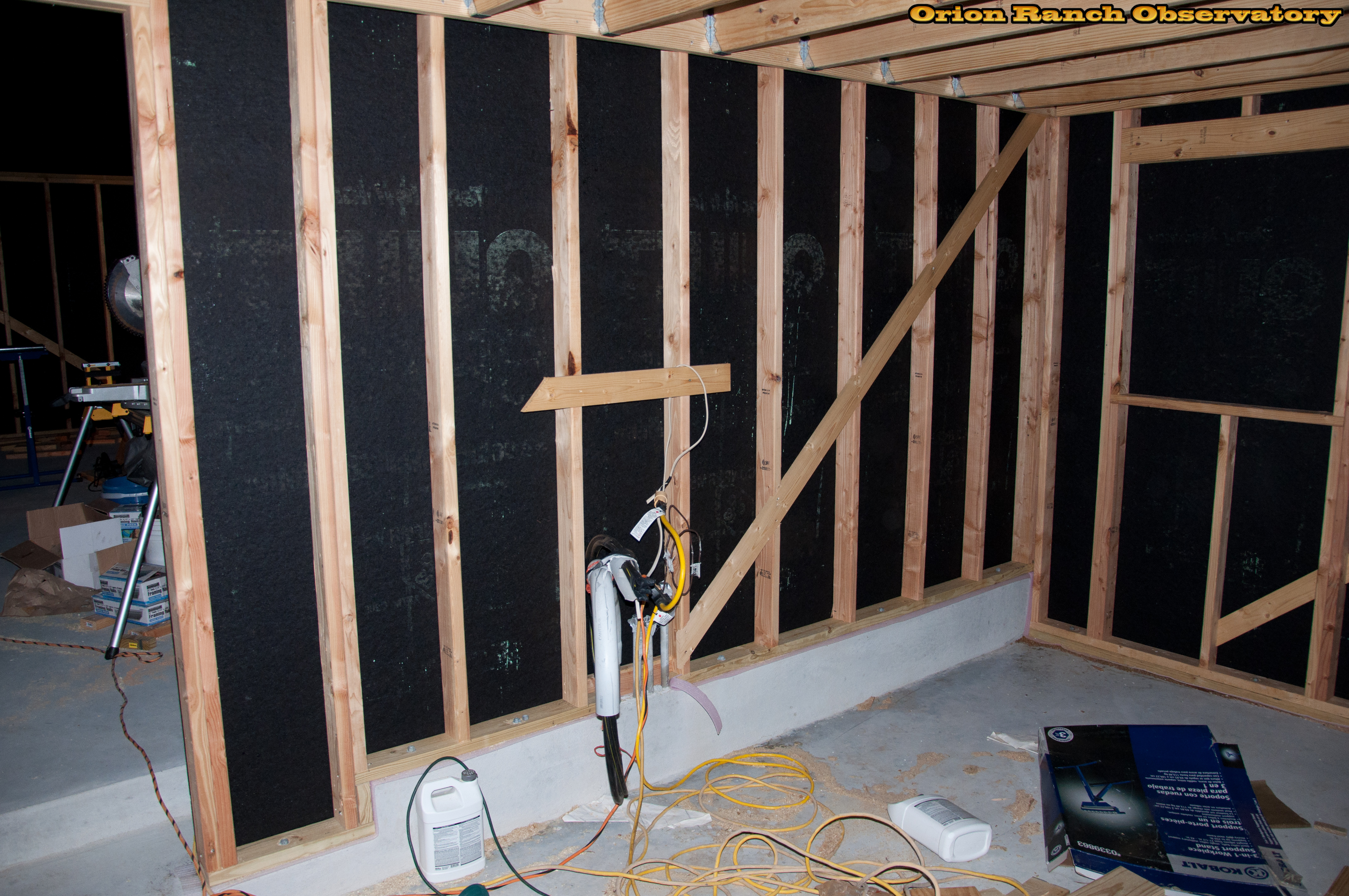 Sheathing the wall between the observatory and warm room.