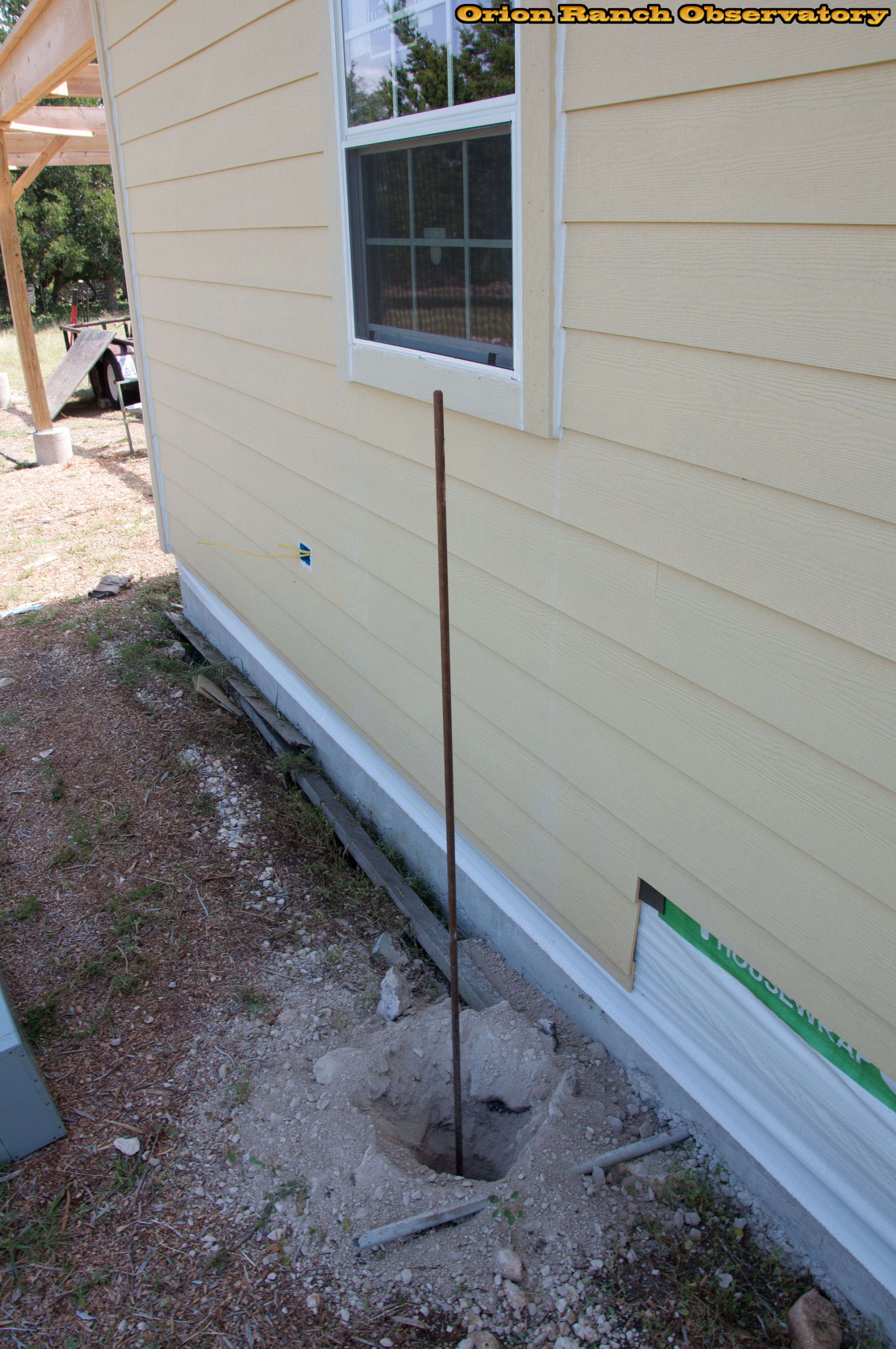 Adding an external ground rod for a secondary safety ground for the electrical (conduit path) and lightning protection for the RF cables coming into the observatory. Started with a hole dug to the limit of the post hole digger.