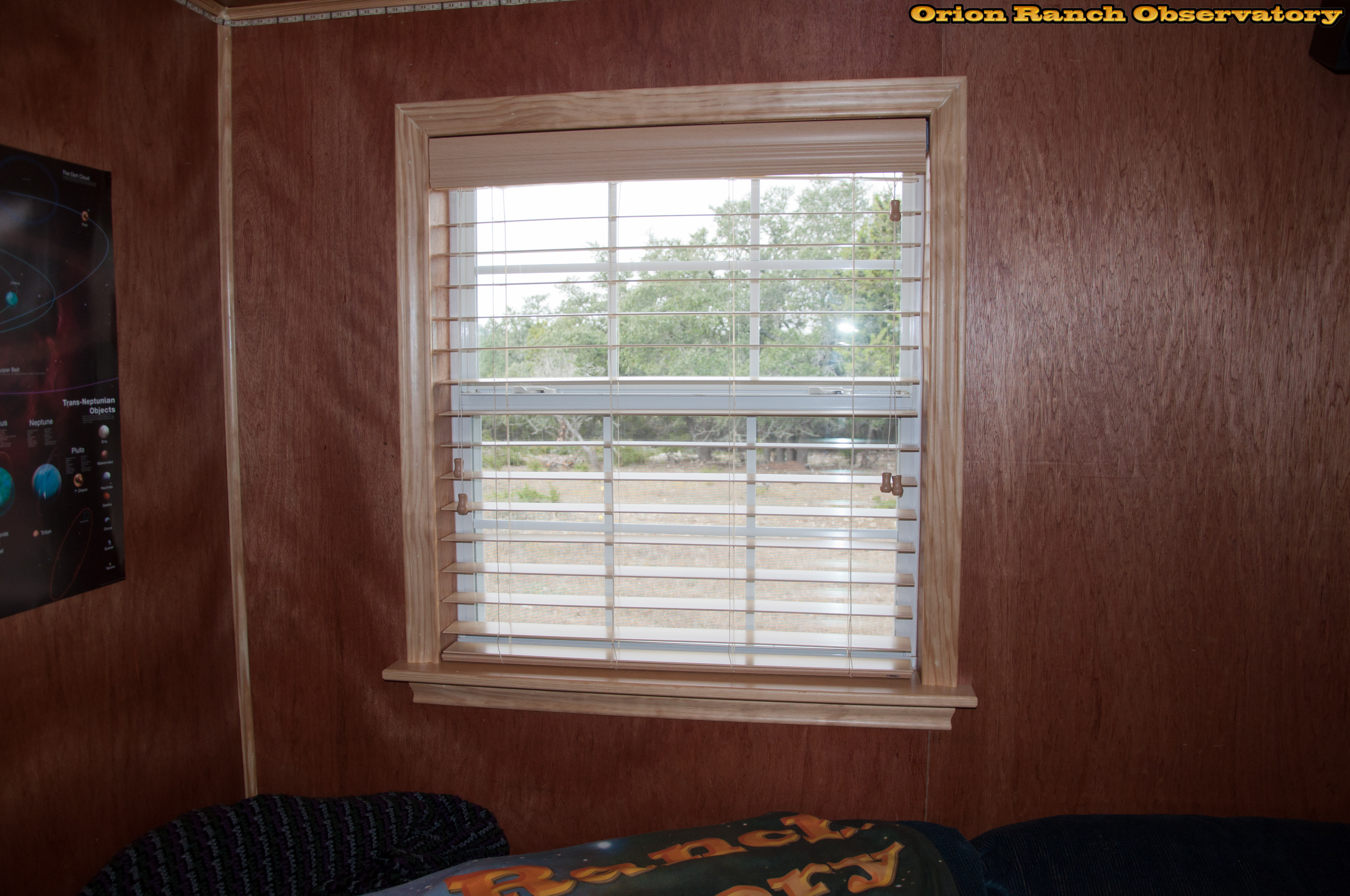 Daytime view of open blinds after installing smaller clips for valance so that it sits inside frame as intended.