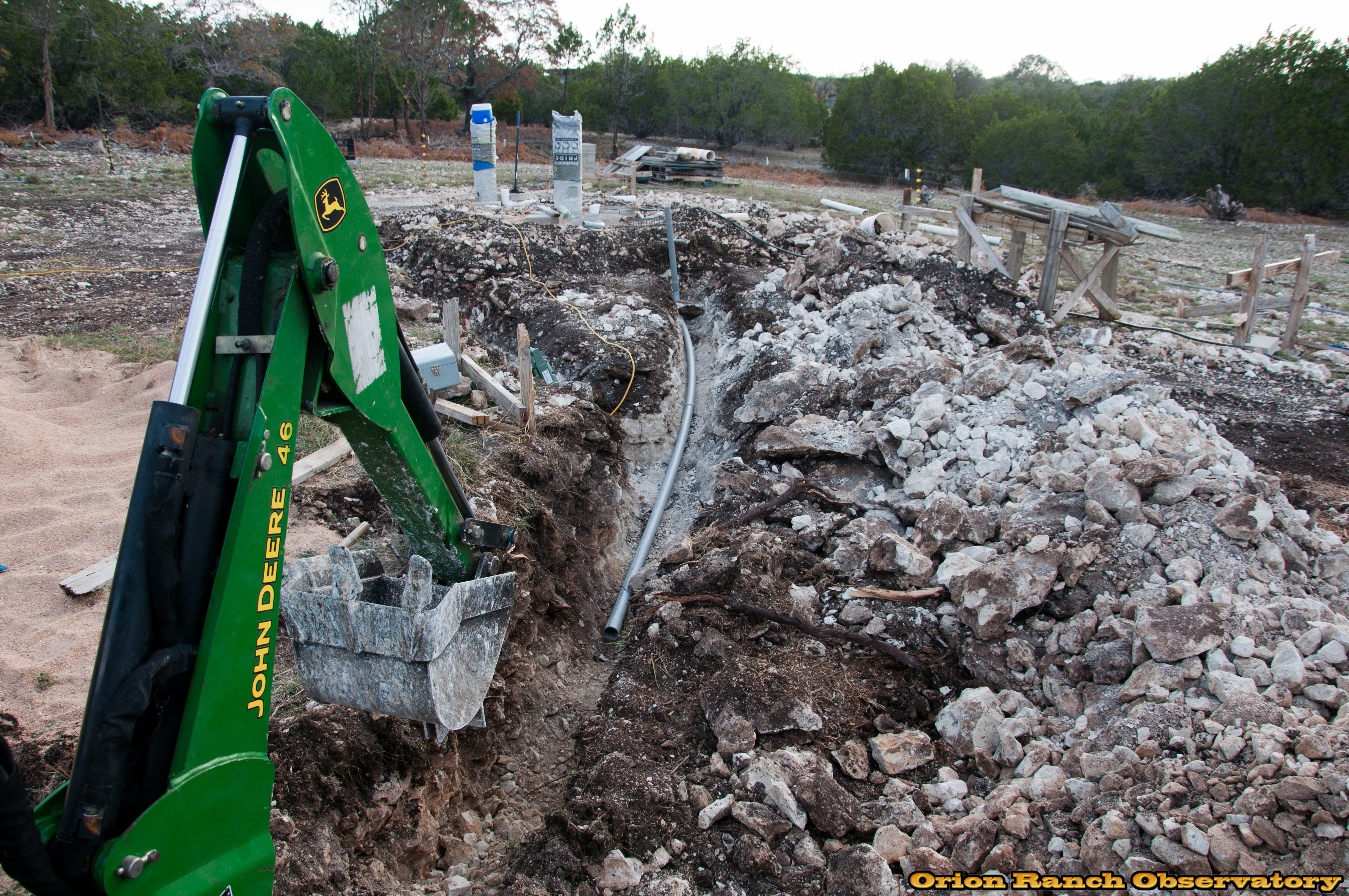 I needed to add a conduit for the main AC line. It would have been easier to come out along a beam, but that would have cost more in power cable. Given the cost of cable, trenching through the slab made more sense.