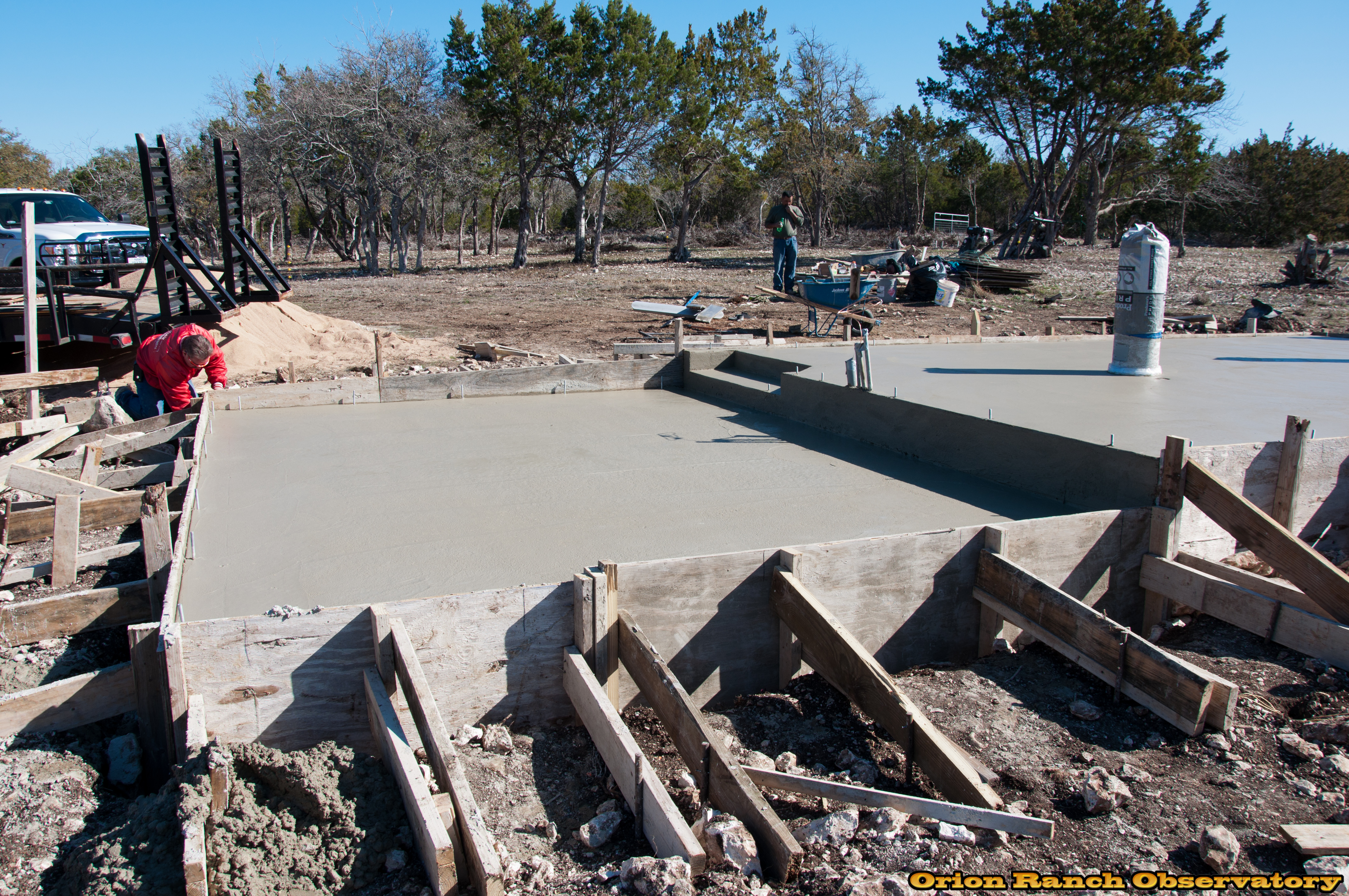 For the rest of the day, they continue troweling and waiting on the slab to cure enough to smooth it out. The soupy bottom slab was of course a problem, especially as the sun went down. Hopefully it'll still be strong enough and not crack!