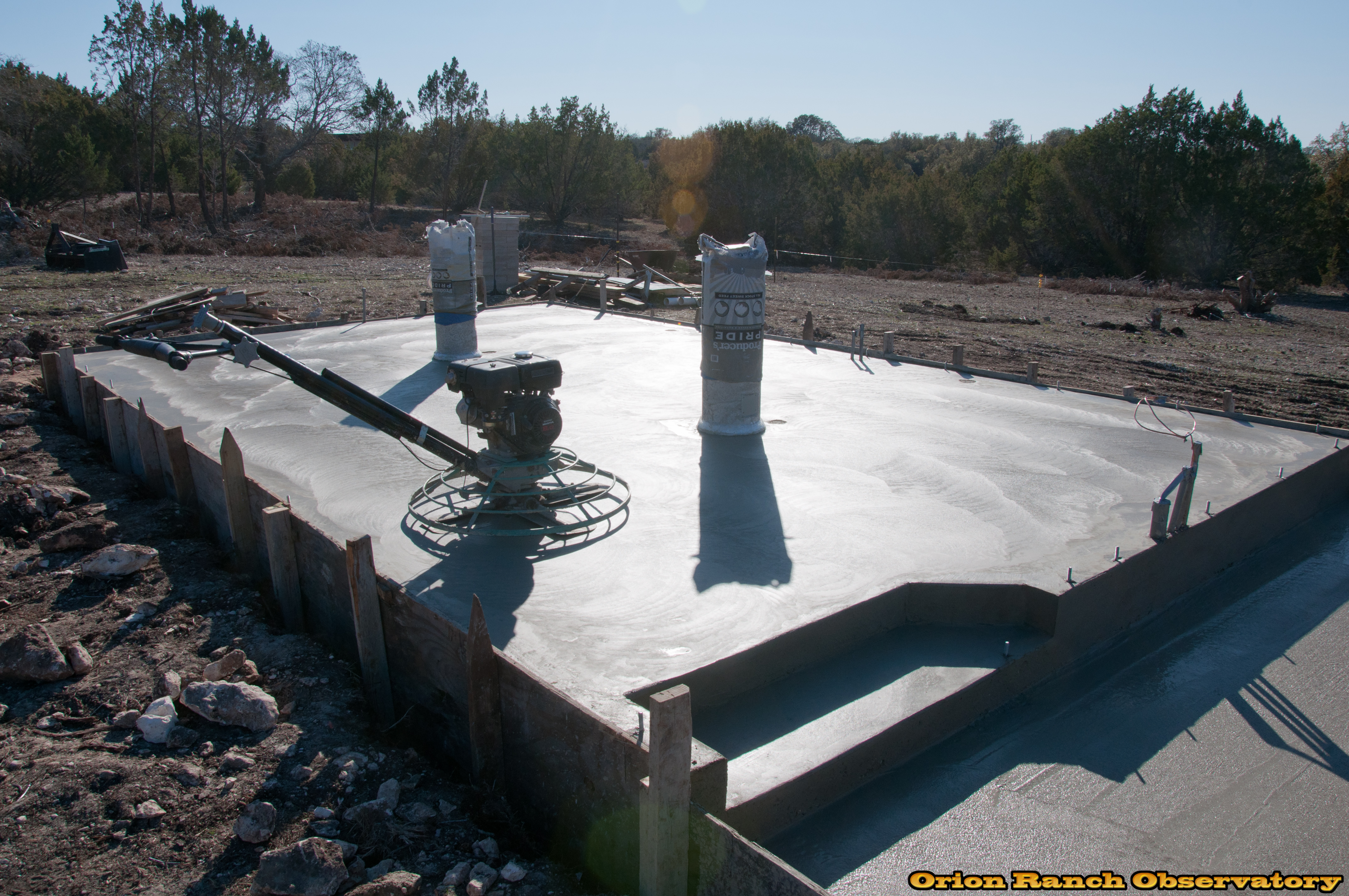 For the rest of the day, they continue troweling and waiting on the slab to cure enough to smooth it out. The soupy bottom slab was of course a problem, especially as the sun went down. Hopefully it'll still be strong enough and not crack!