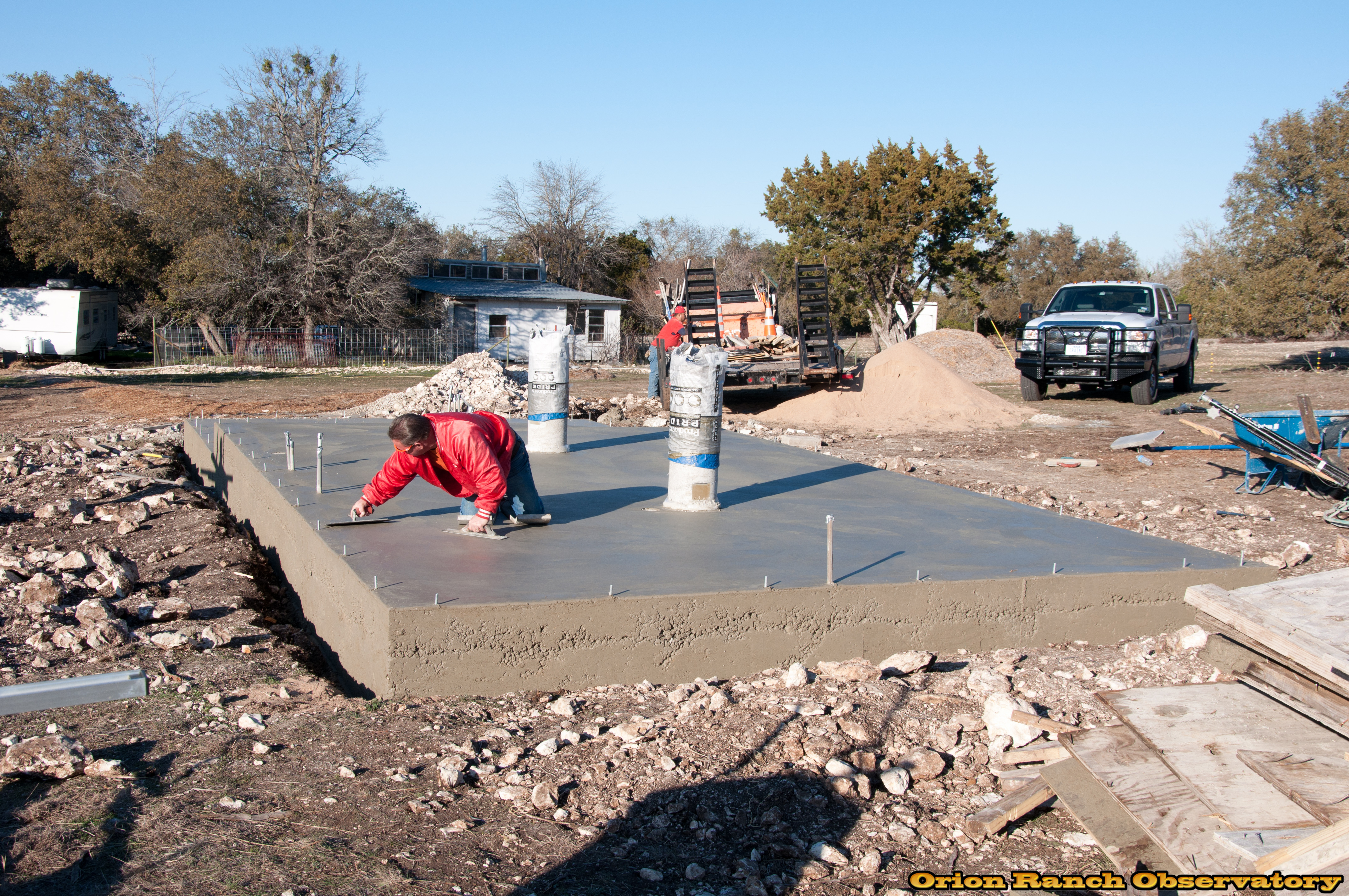 For the rest of the day, they continue troweling and waiting on the slab to cure enough to smooth it out. The soupy bottom slab was of course a problem, especially as the sun went down. Hopefully it'll still be strong enough and not crack!