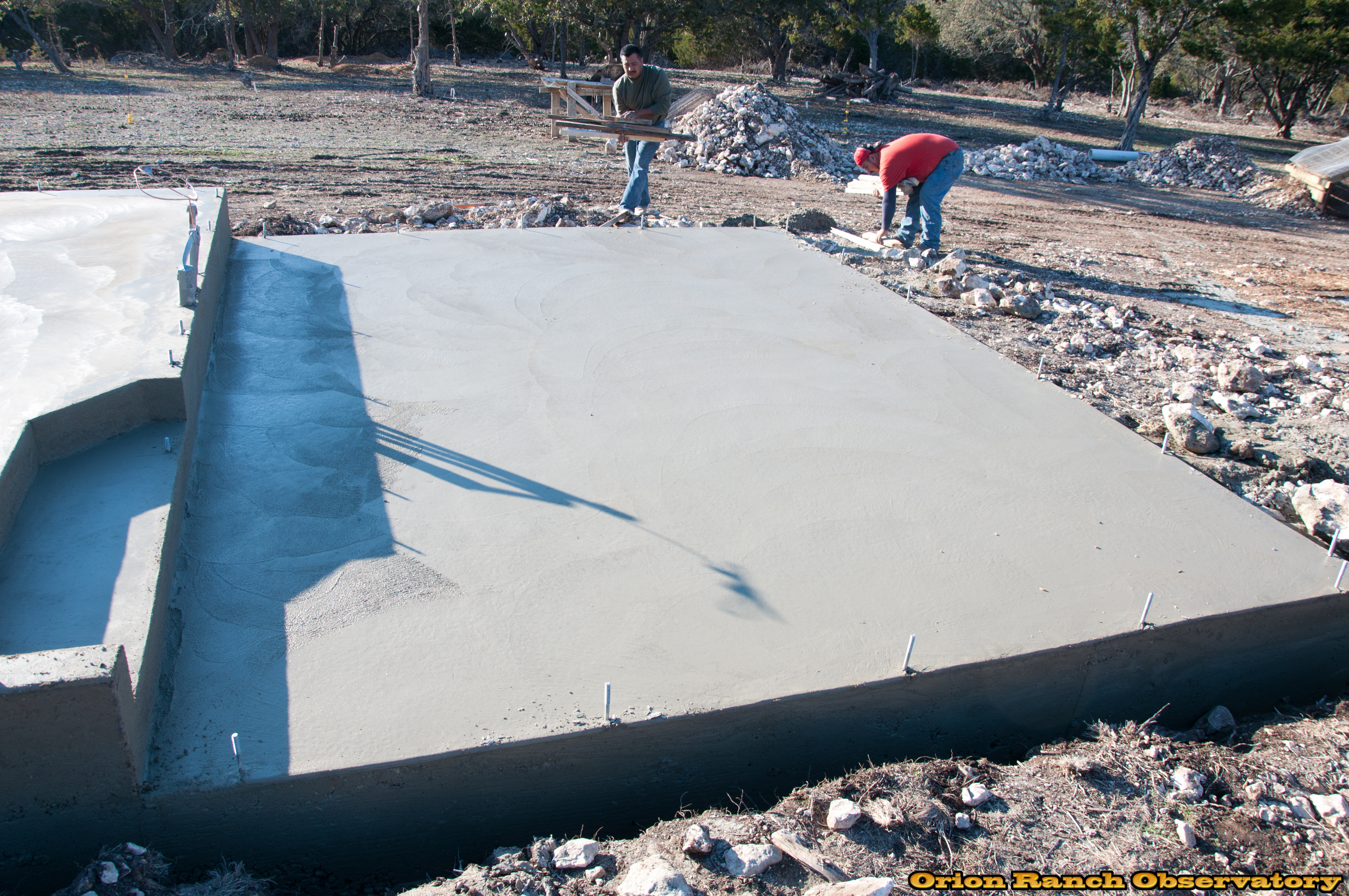 For the rest of the day, they continue troweling and waiting on the slab to cure enough to smooth it out. The soupy bottom slab was of course a problem, especially as the sun went down. Hopefully it'll still be strong enough and not crack!