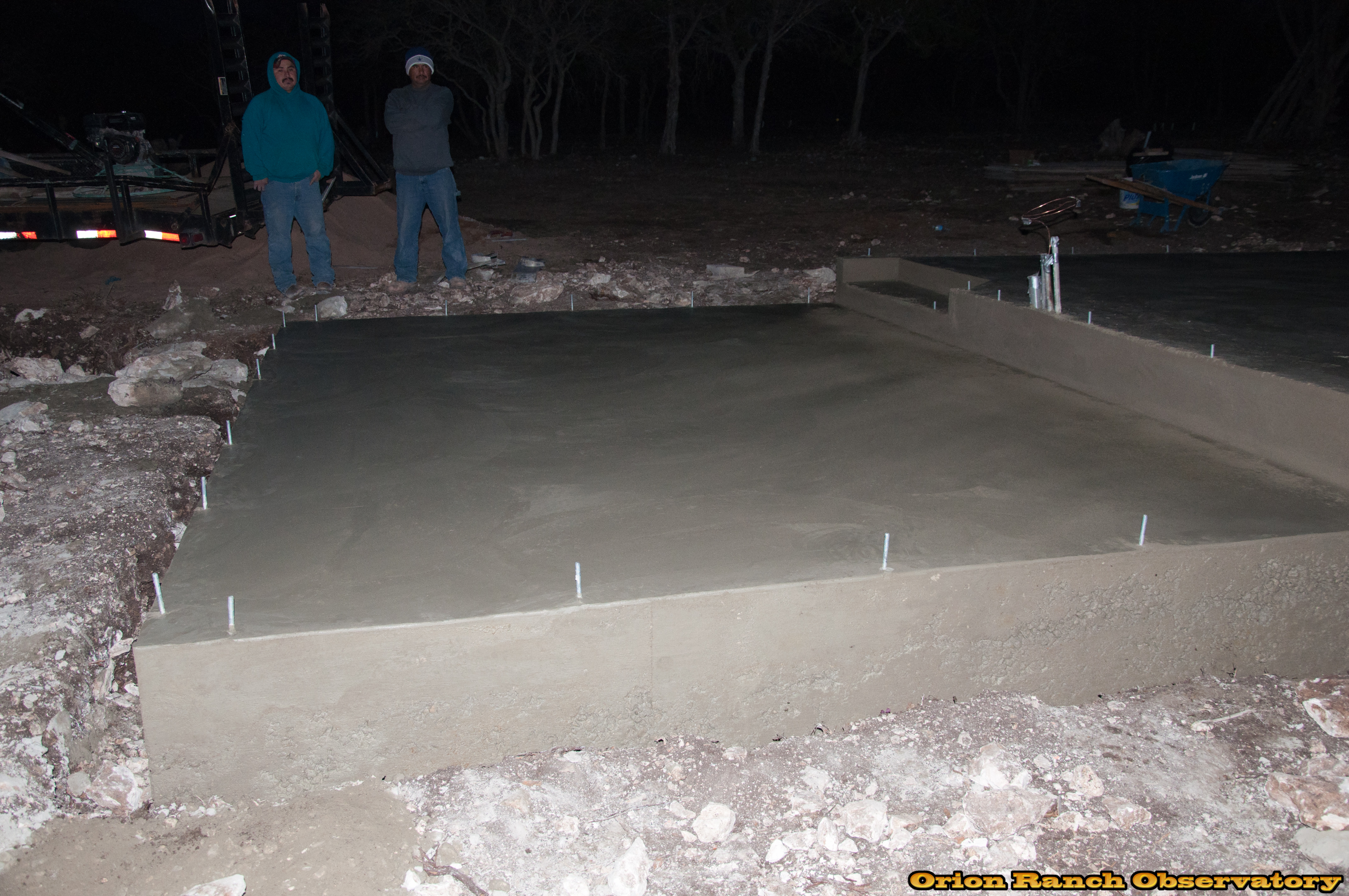 For the rest of the day, they continue troweling and waiting on the slab to cure enough to smooth it out. The soupy bottom slab was of course a problem, especially as the sun went down. Hopefully it'll still be strong enough and not crack!