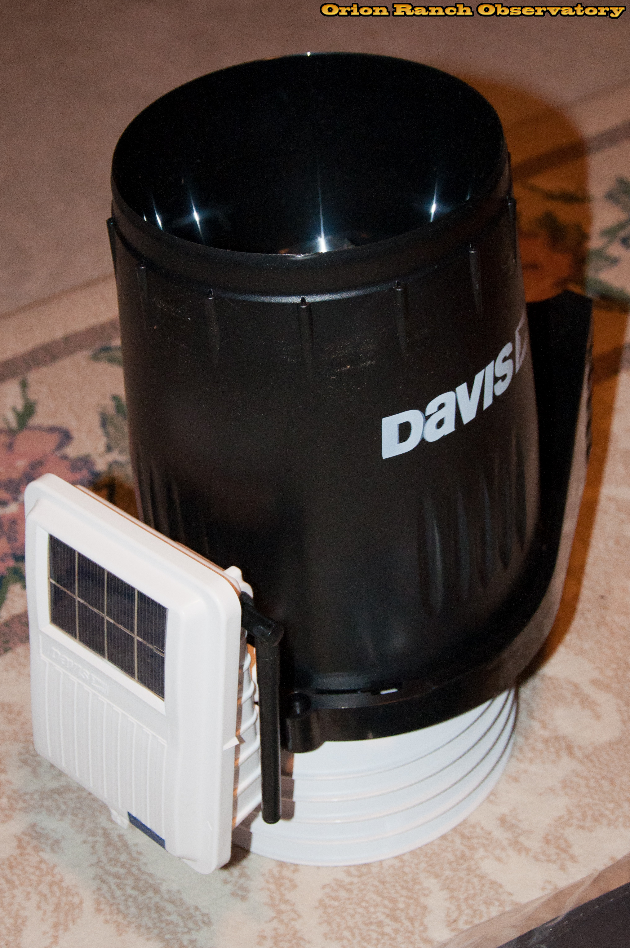 The main module with the rain gauge assembly, temperature sensors, and radio interface.