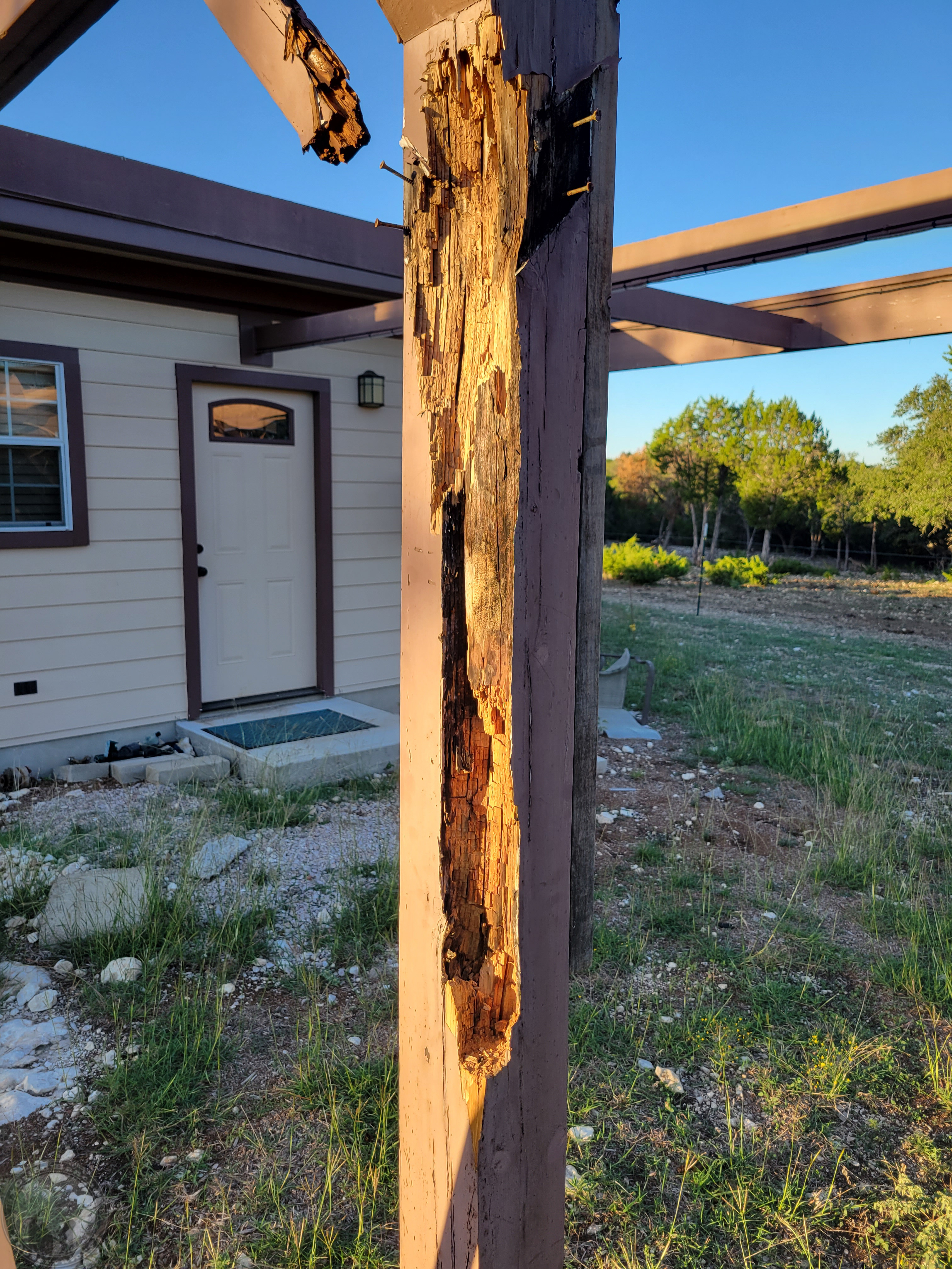 Pictures of the rot removal and an initial brace on the back of the post to ensure the integrity of the post.