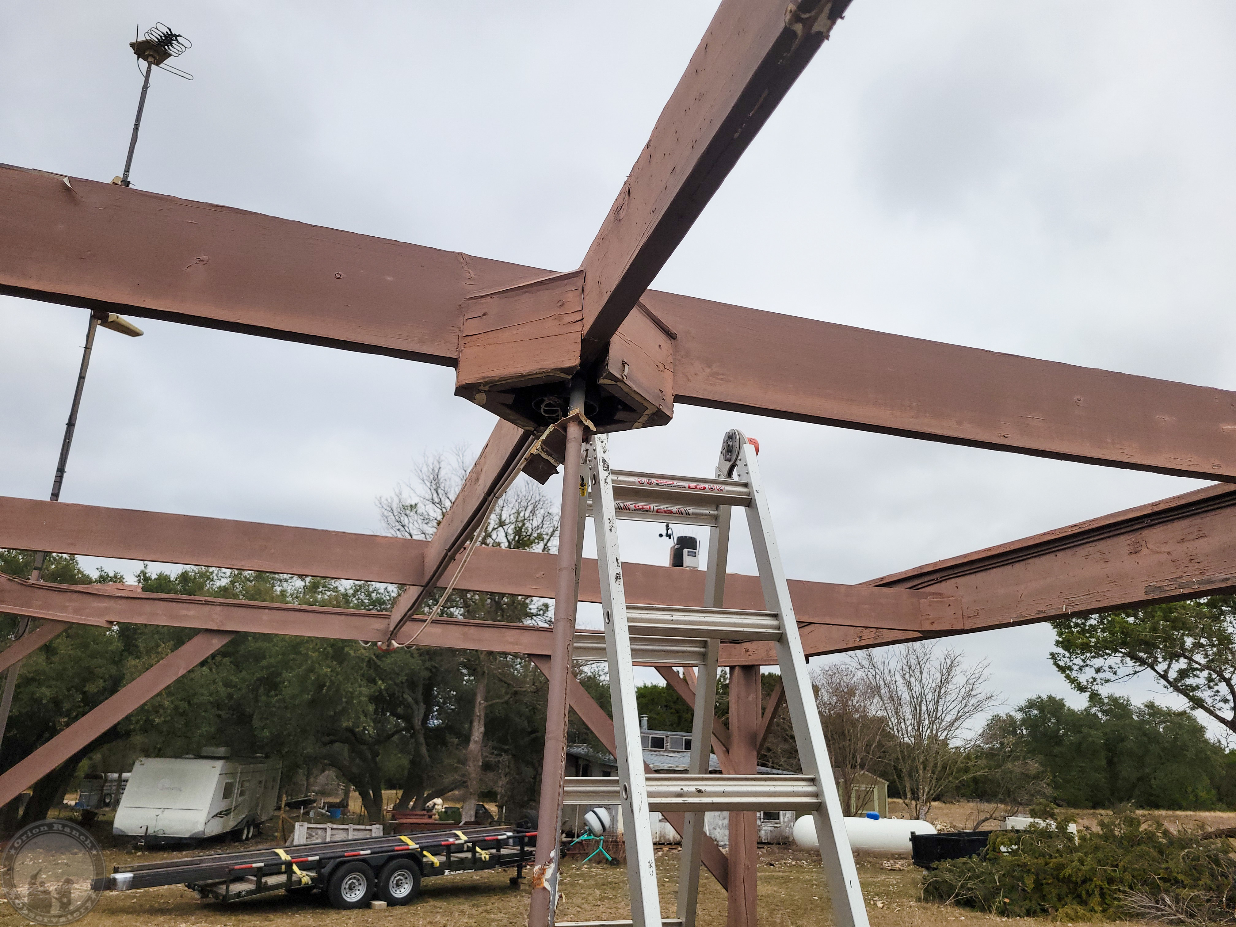 Removing the conduits, lights, and strip lights from the middle run of the frame.