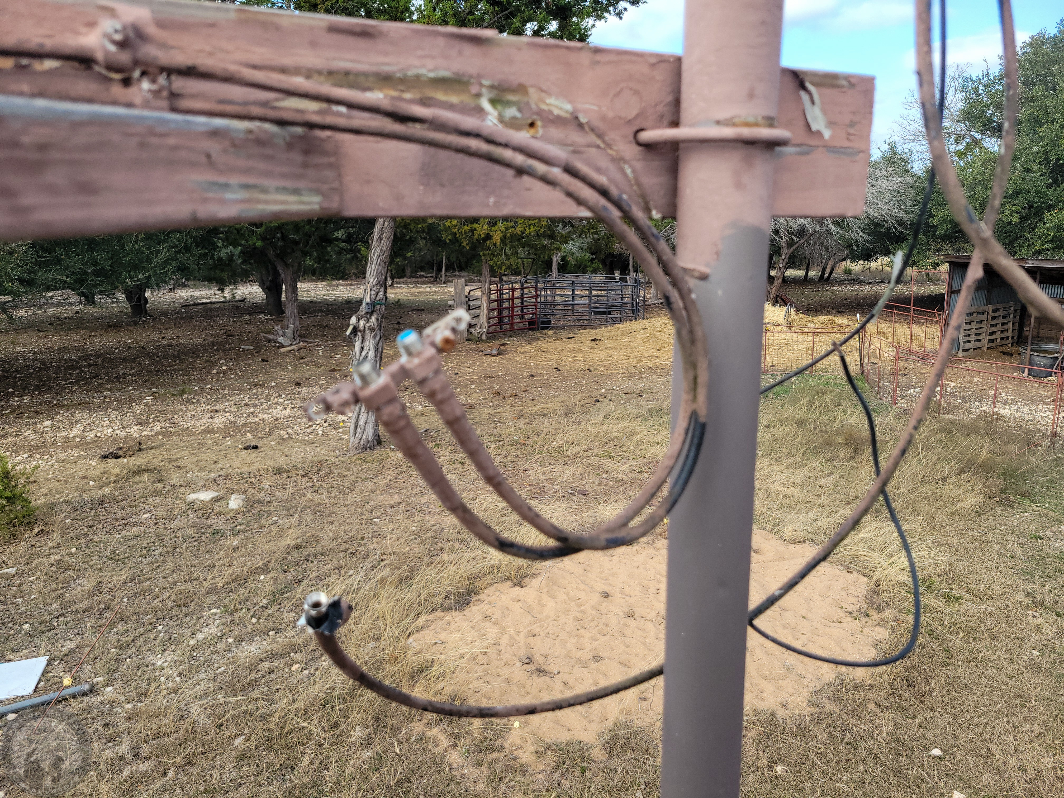 Disconnecting the cables for the TV antenna and cell phone booster antennas. The center pin for the TV antenna was burned off at the lightning arrestor. May have been struck or may have been problems with the power supply that fed the amplifier in the antenna. I probably won't put the antennas back, but the post makes for a good lightning rod. Not to mention the antenna was always my North indicator in my all-sky camera!