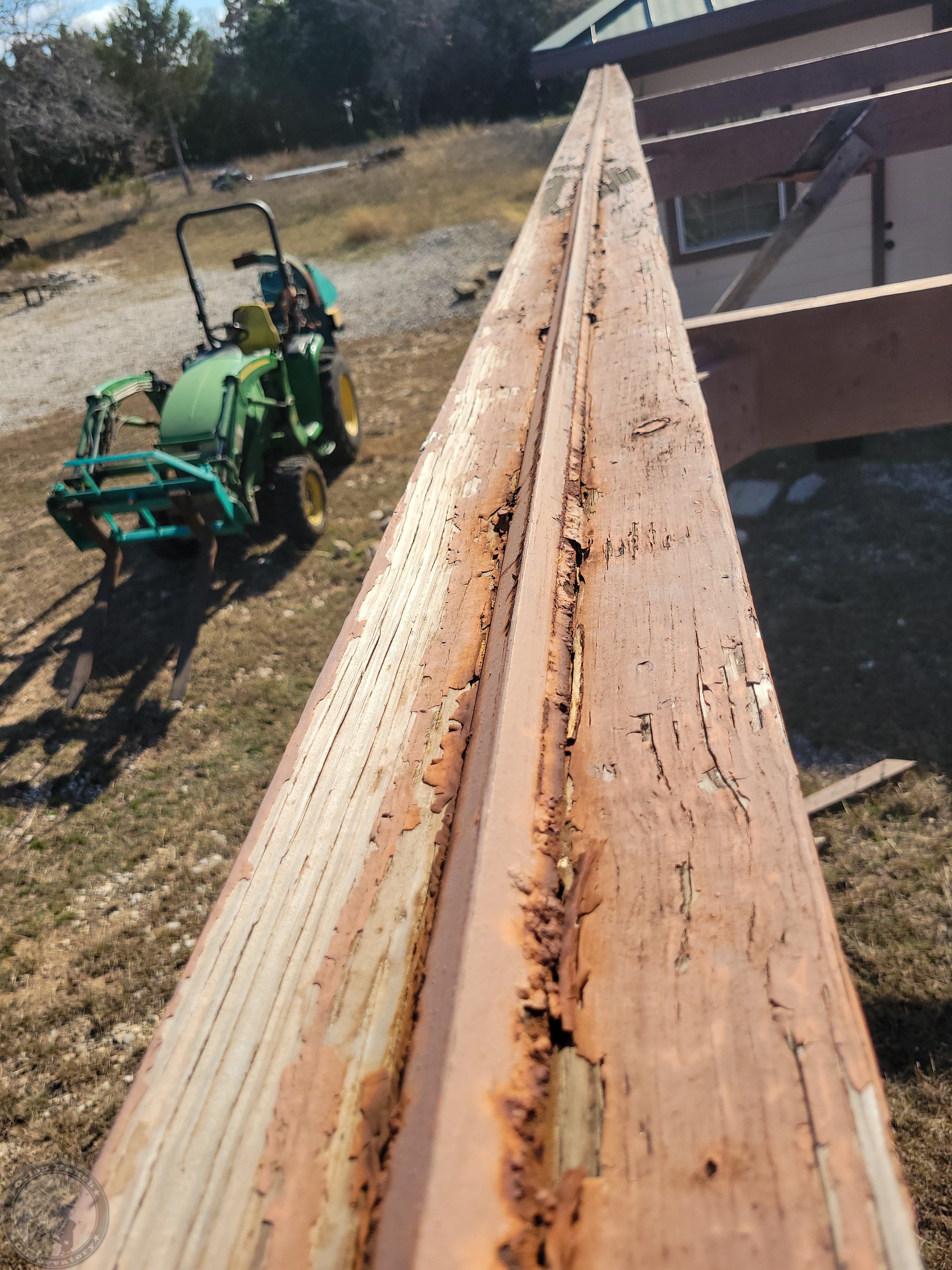 View of the weavy east rail. Quite a bit of rust on the angle iron. Most of the wood damage is under the angle track.