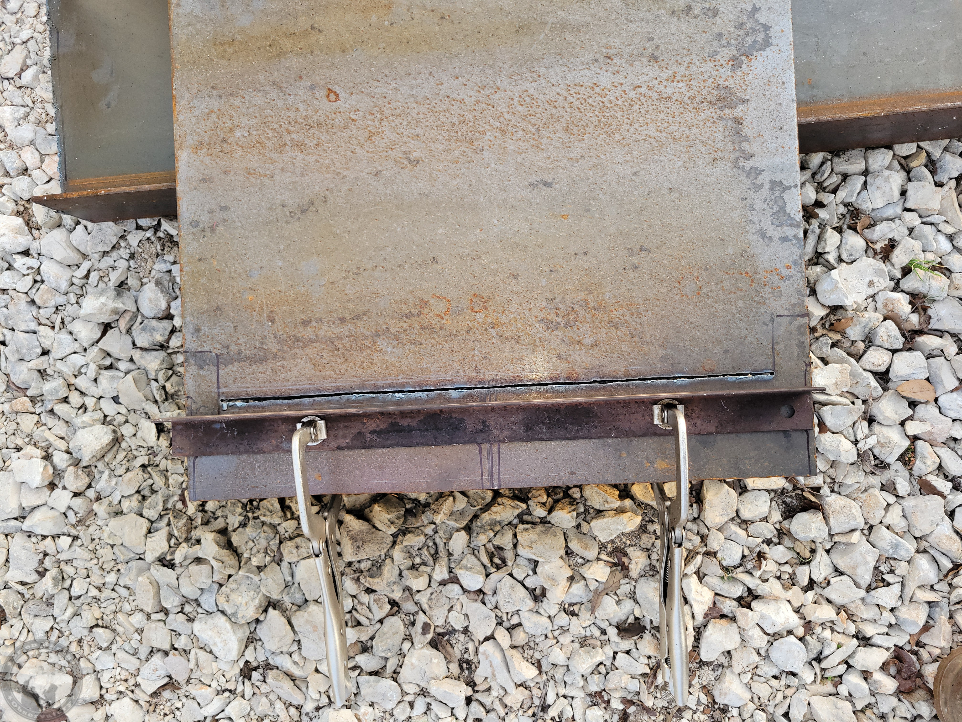 I'd originally planned to just put small pieces inside the rail to brace it and pull the rail in to butt up against the wood, but decided that a single cap piece would give me better chances to weld it solid and probably be stronger overall than the two partial pieces. You can see all the slag on the back side after I was done.