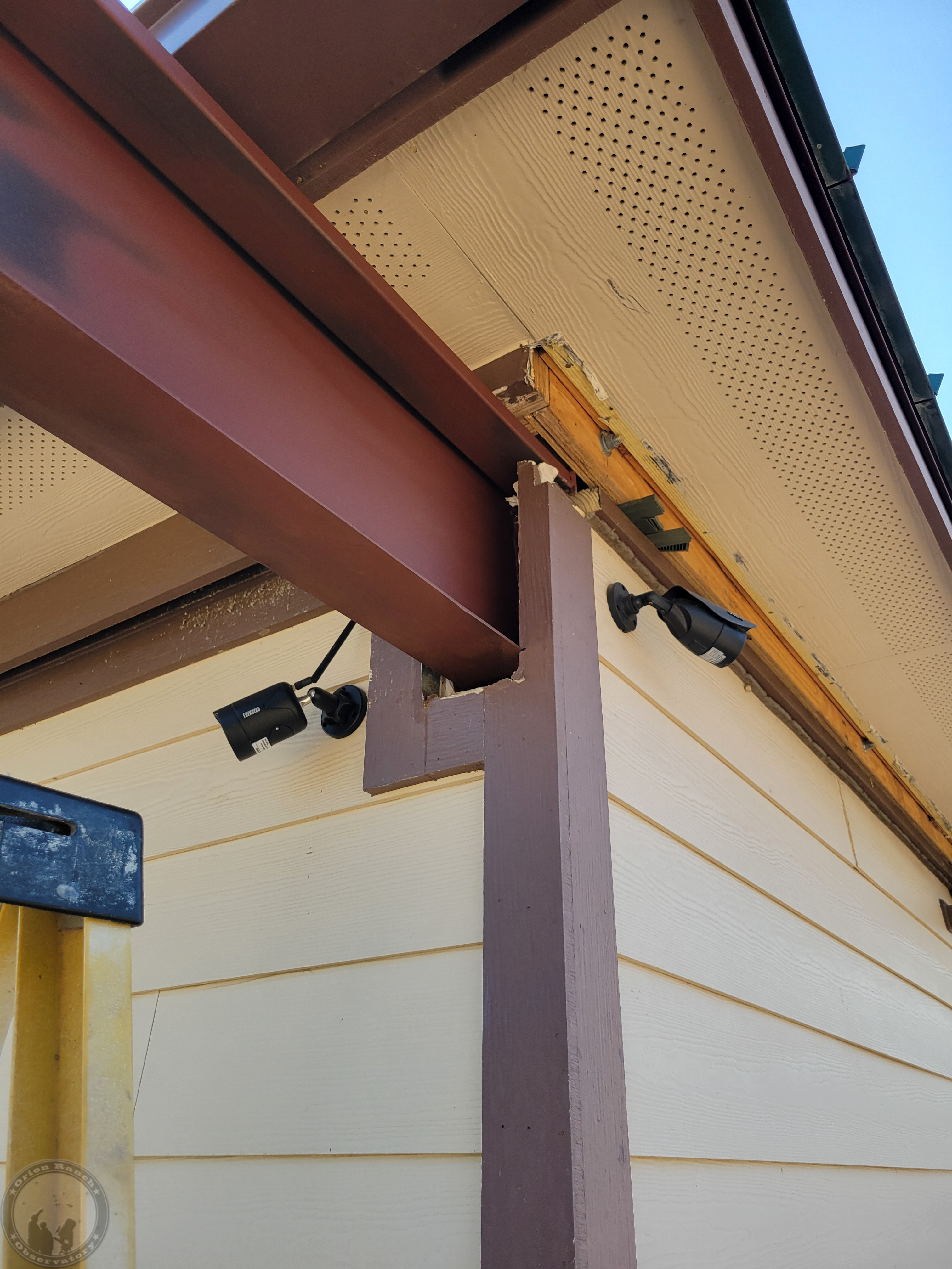 After some lifting and heaving and shoving (not easy on an 8' ladder!) the beam is most of the way into the slot, but still resting on the siding.