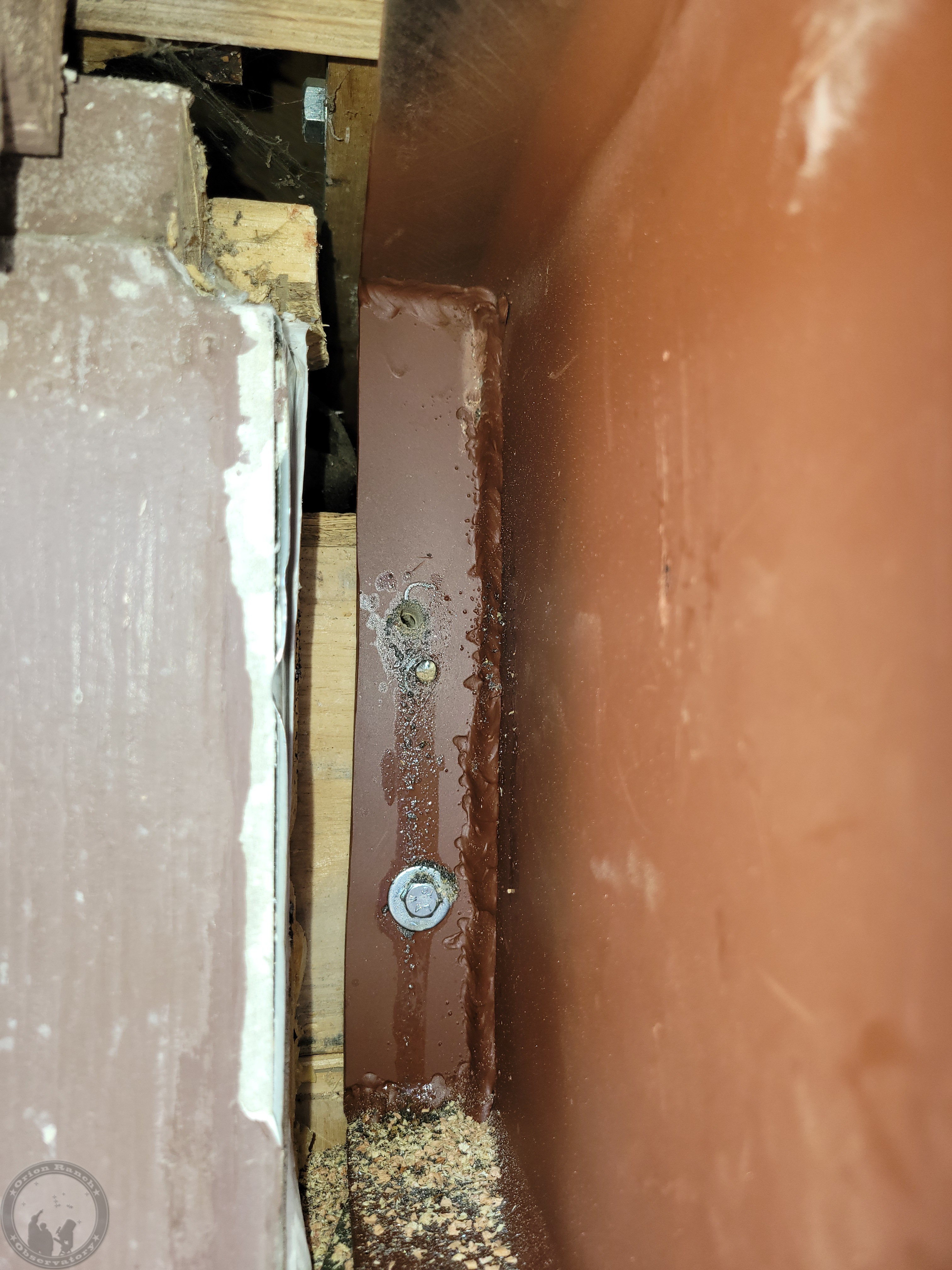 I had to hand drill a replacement hole. Lots more work than on the drill press, that's for sure! Still, that let me get the last bolt in, but now I'm short one!