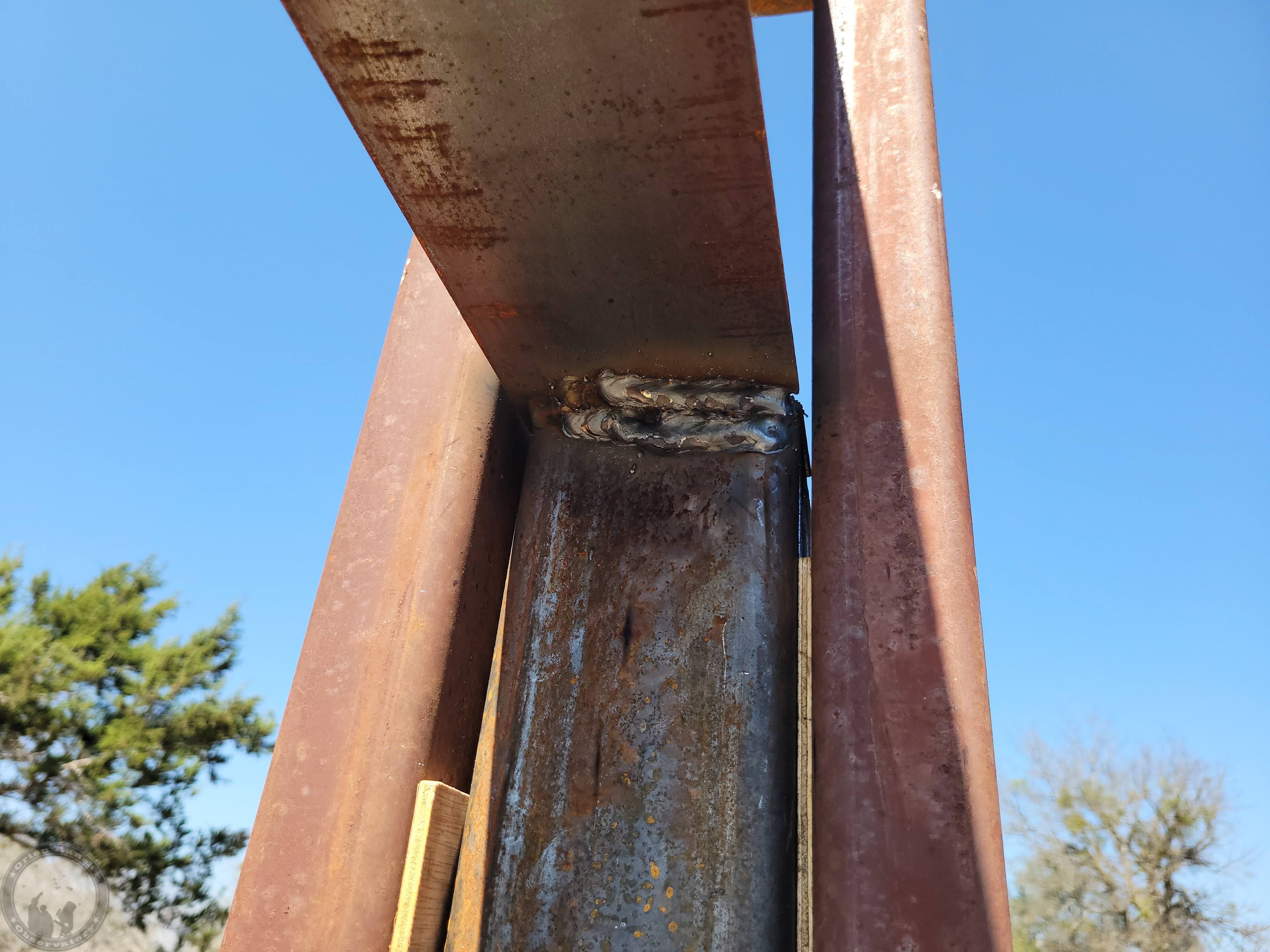 Several beads of overhead weld before taking off the braces. Not bad given this is an overhead weld!