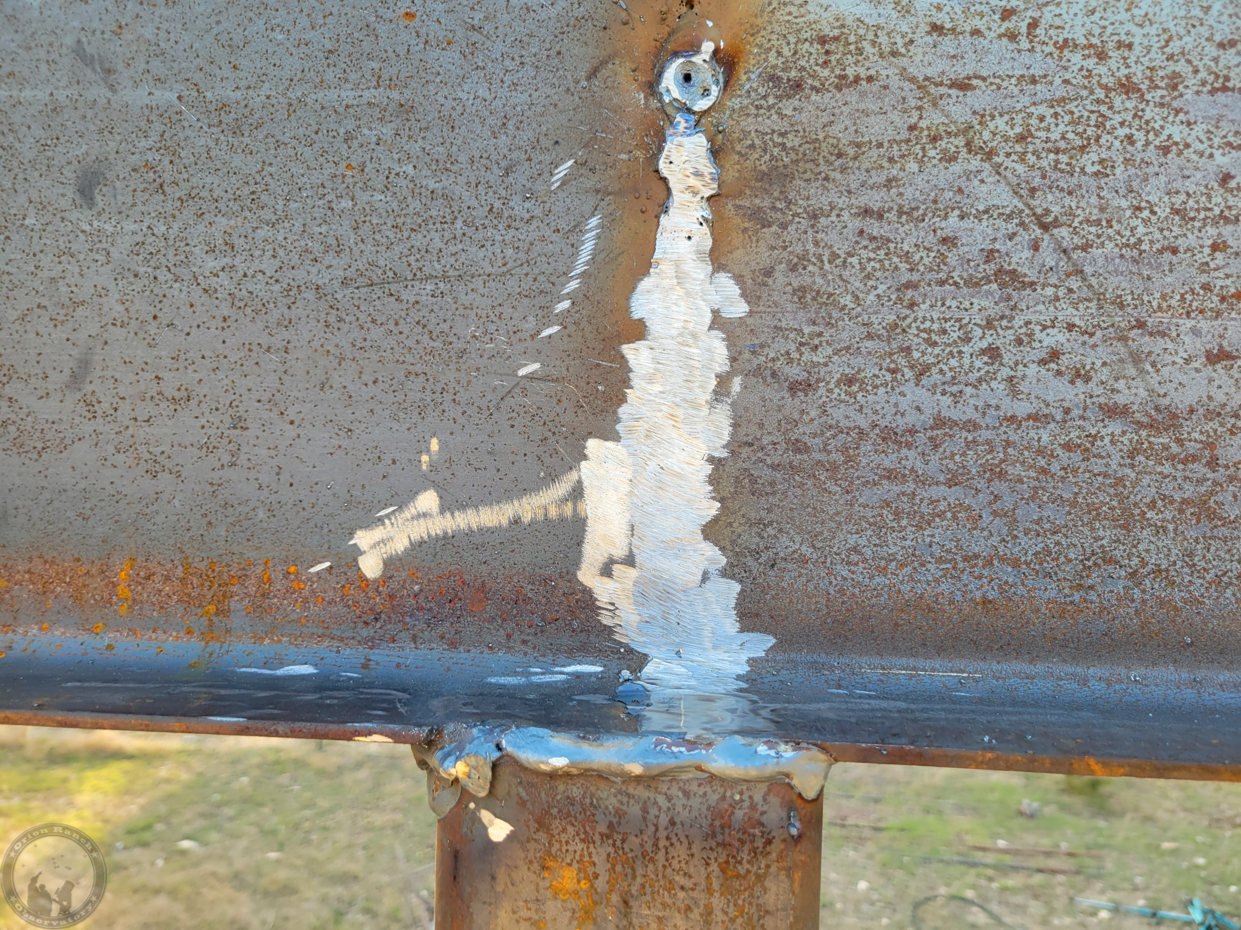 Grinding down the bottom half of the bead to allow installing the cross member.