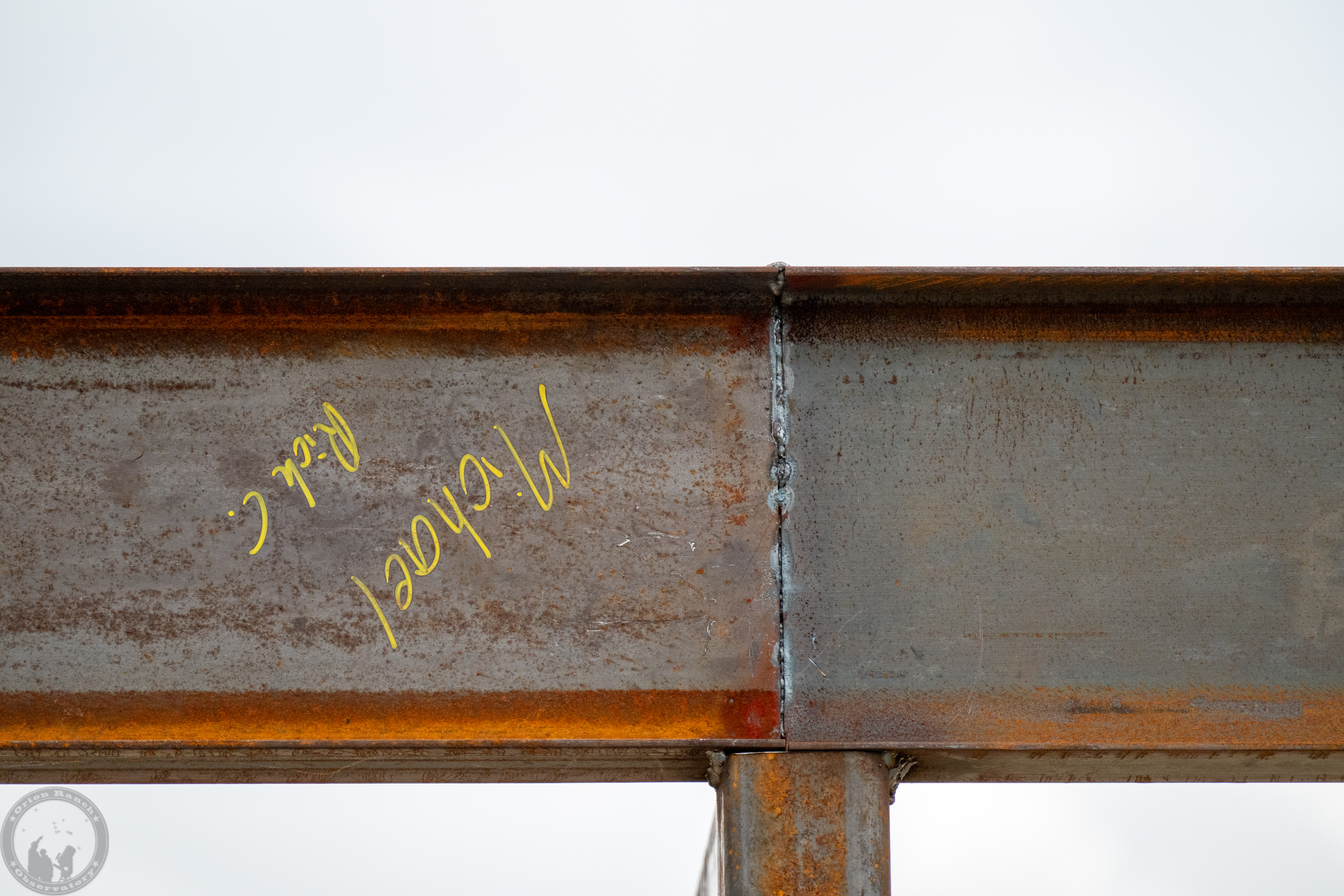 Various welds and seams between the beams and cross members.