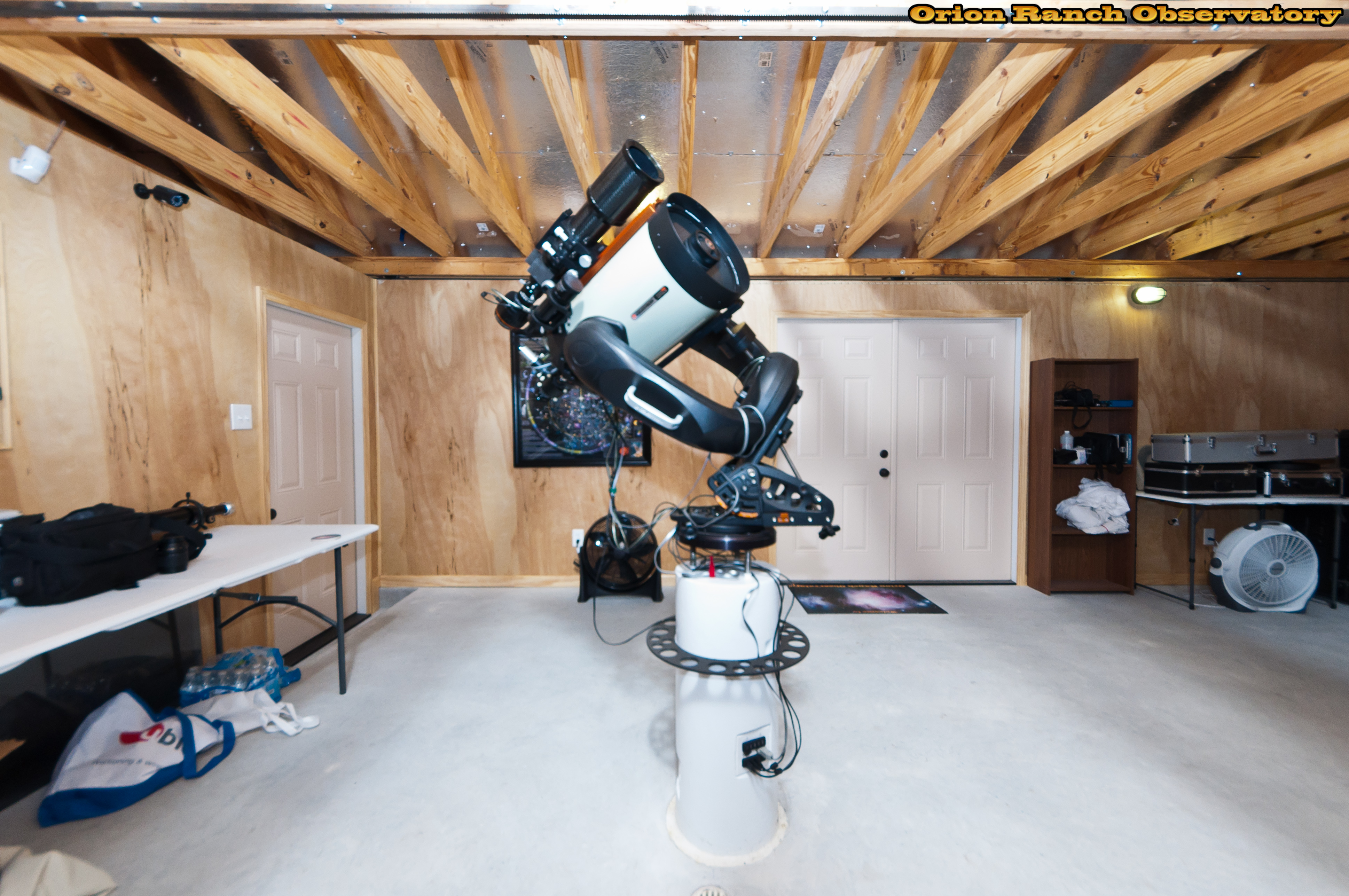 Various views around the observatory showing the 11" Edge HD with the AT80LE piggy-backed for imaging. The Sky Watcher ED-100 is piggybacked on the 11" NexStar GPS we use for visual observing with the Williams Optics binoviewer.
