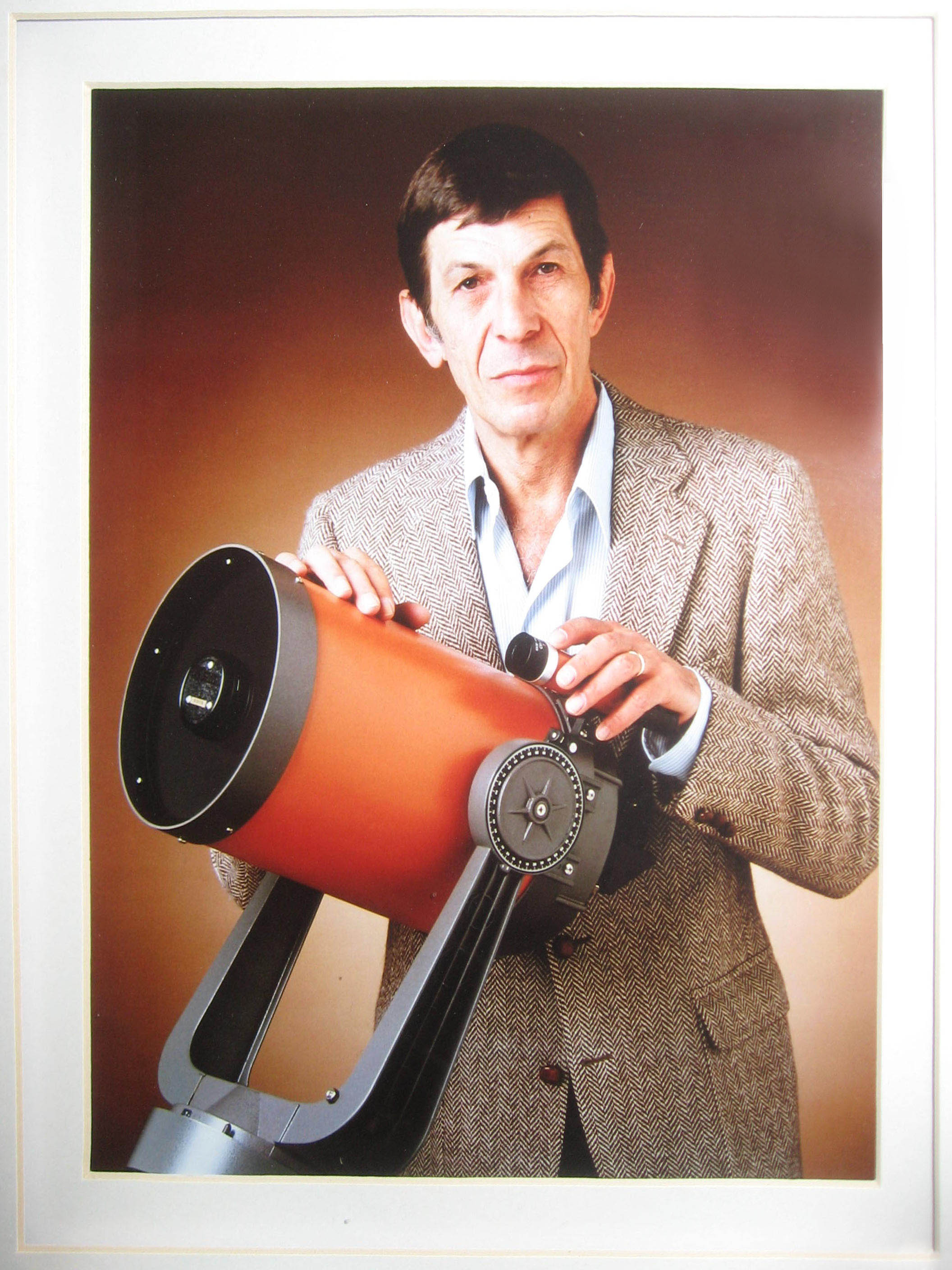 Photo of Leonard Nimoy (Mr. Spck of Star Trek fame) in front of a Celestron C8, Circa 1980)