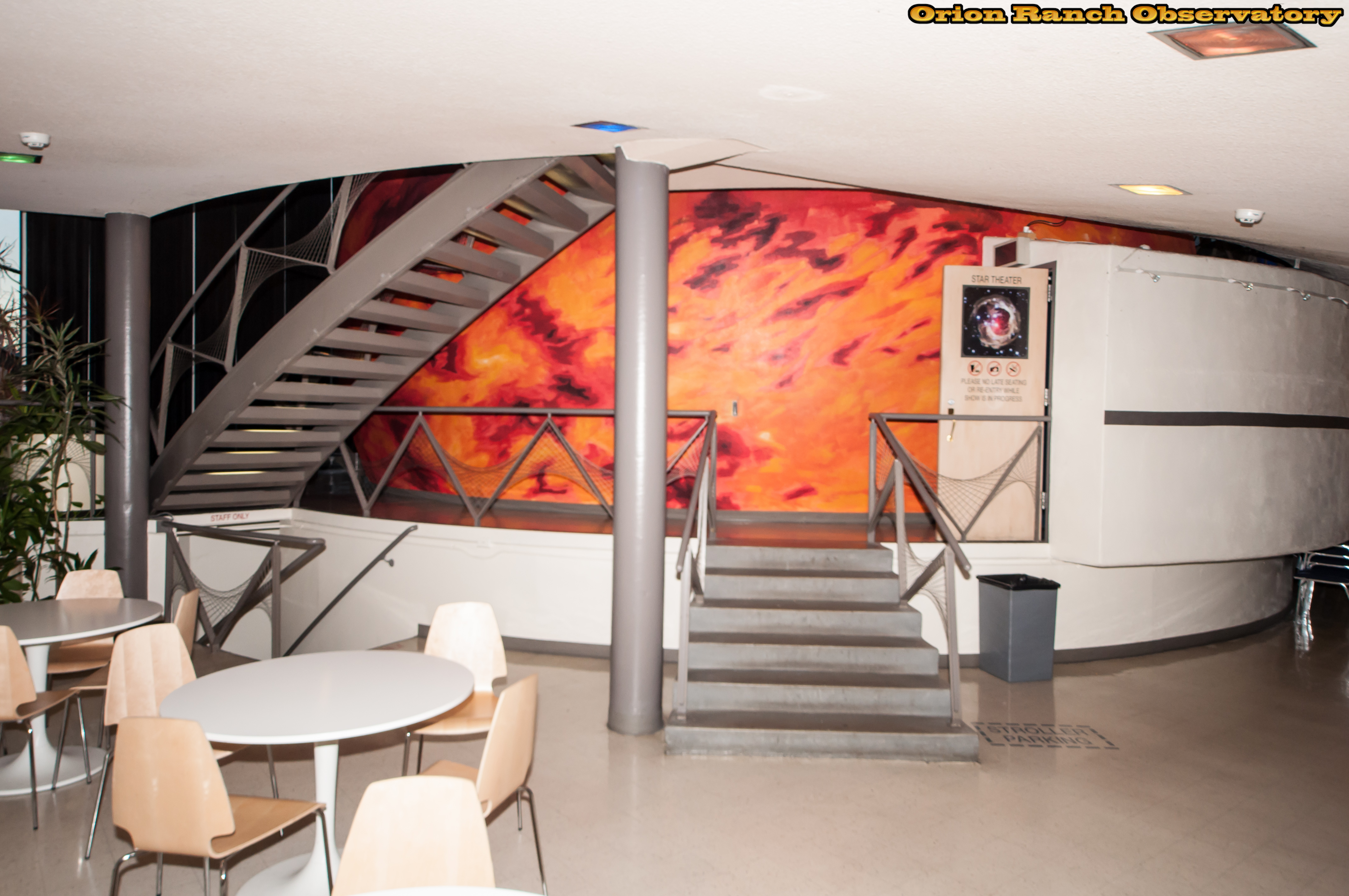 Various views of the area outside the planetarium dome on the first floor. Ther are classroom areas behind this.