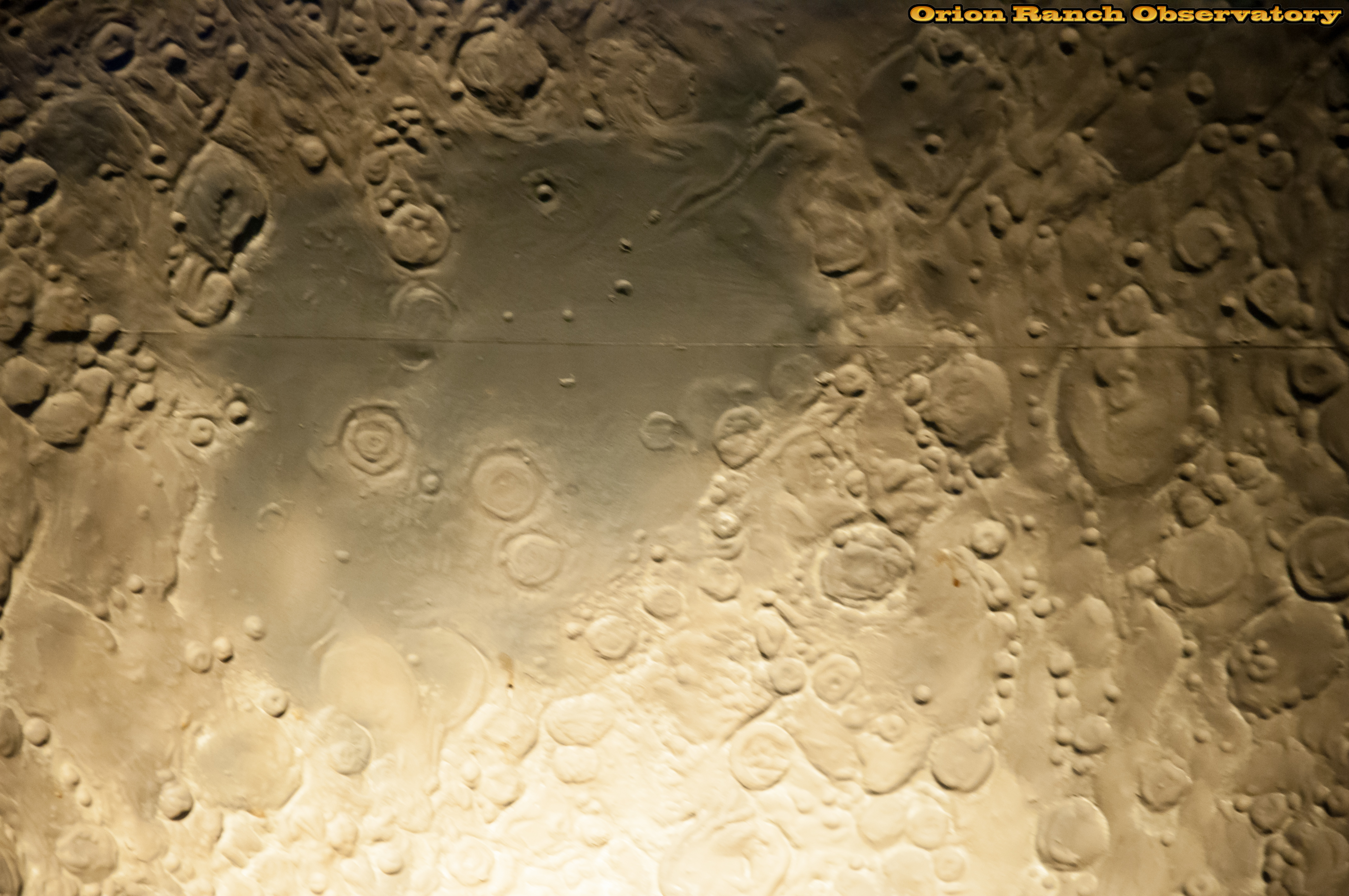 The various portholes in the entrance wall point to several of the paintings across the exhibit far wall. Most are just PVC pipe in the wall, but the central one gives a vew of orbiting the moon as the globe rotates.