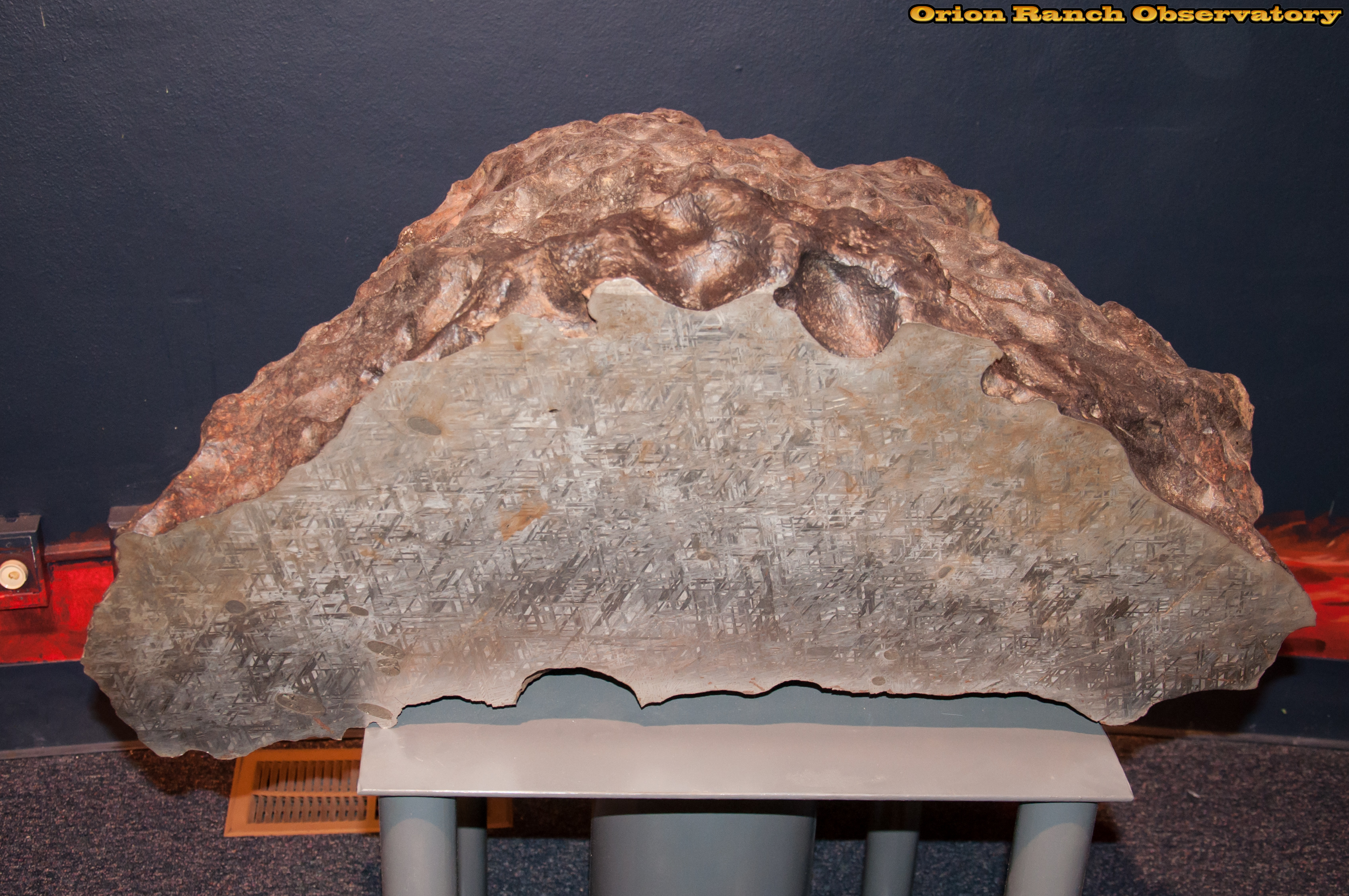 A massive one ton piece of meteorite is the centerpiece of a large display of meteorites.