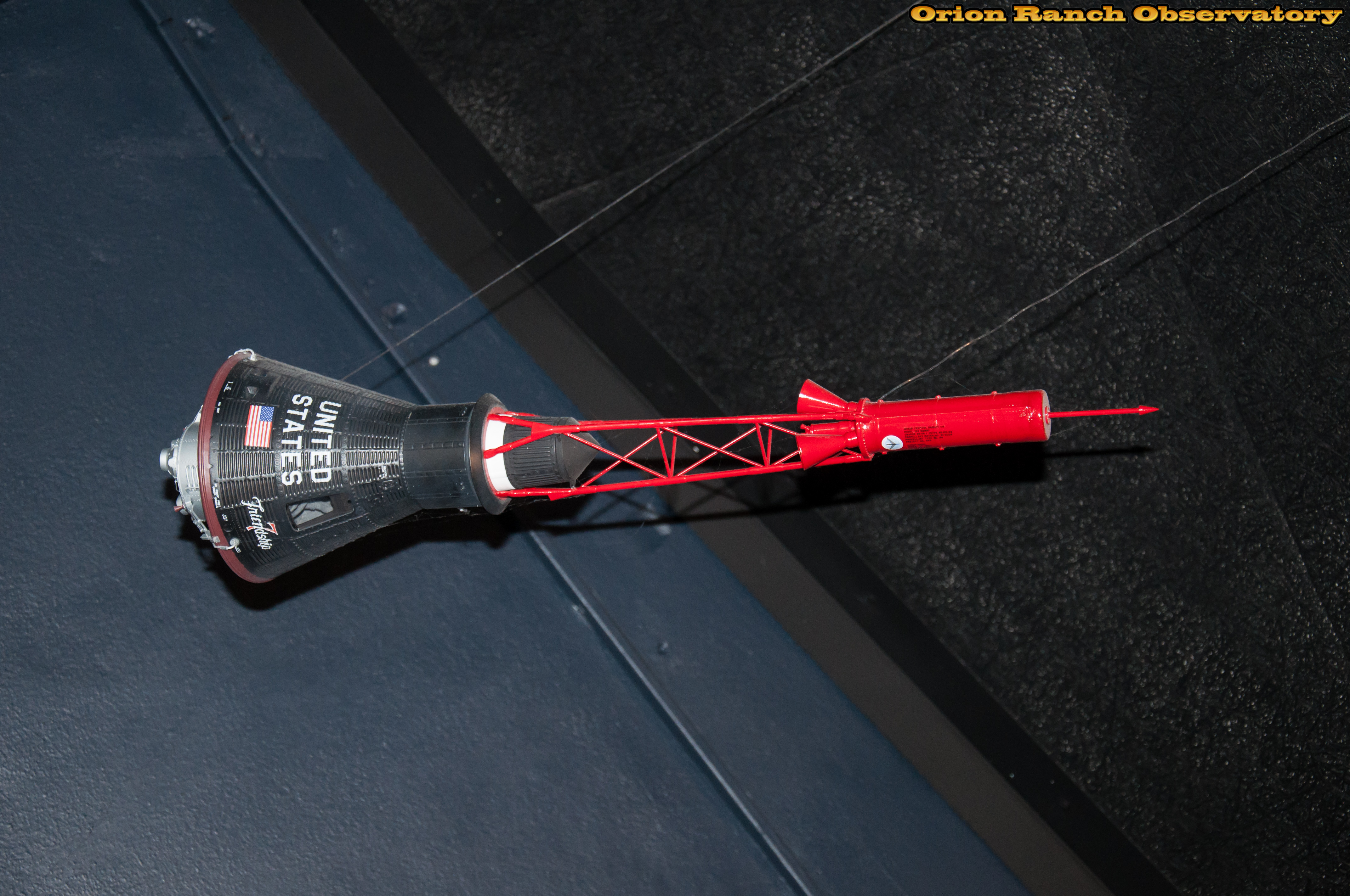 A model of John Glenn's Mercury capsule floats above in the corner of the exhibit.
