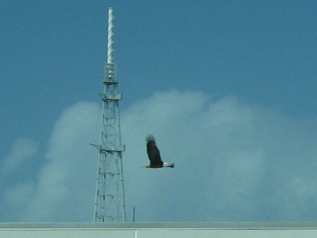 God Bless America! Part of the large collection of wildlife on the KSC and Cape Canaveral nature preserve; one of the many American Bald Eagles that nest there.