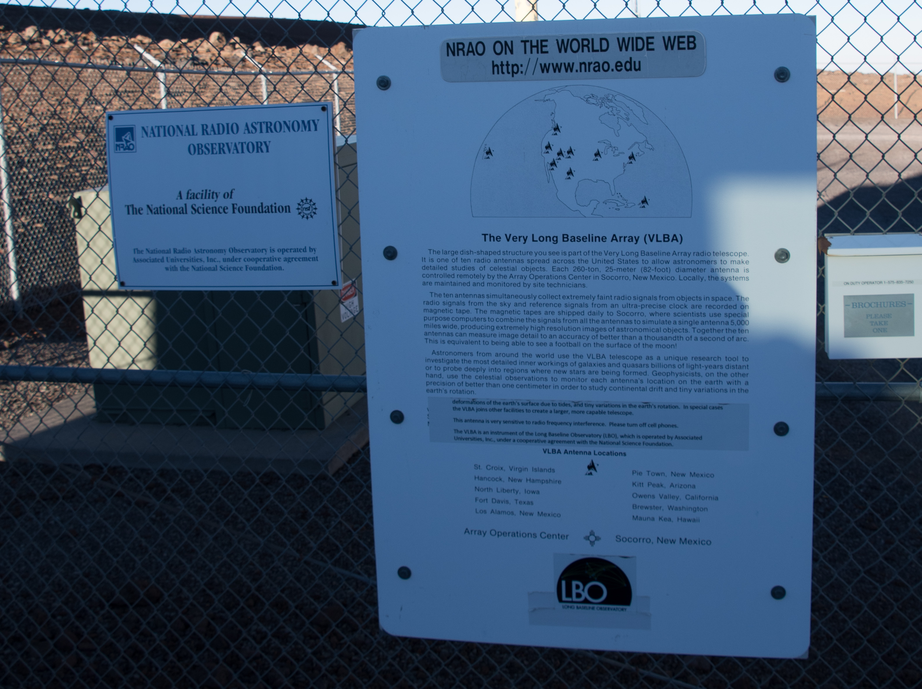 Various views of the Very Long Baseline Array antenna dish below the summit.