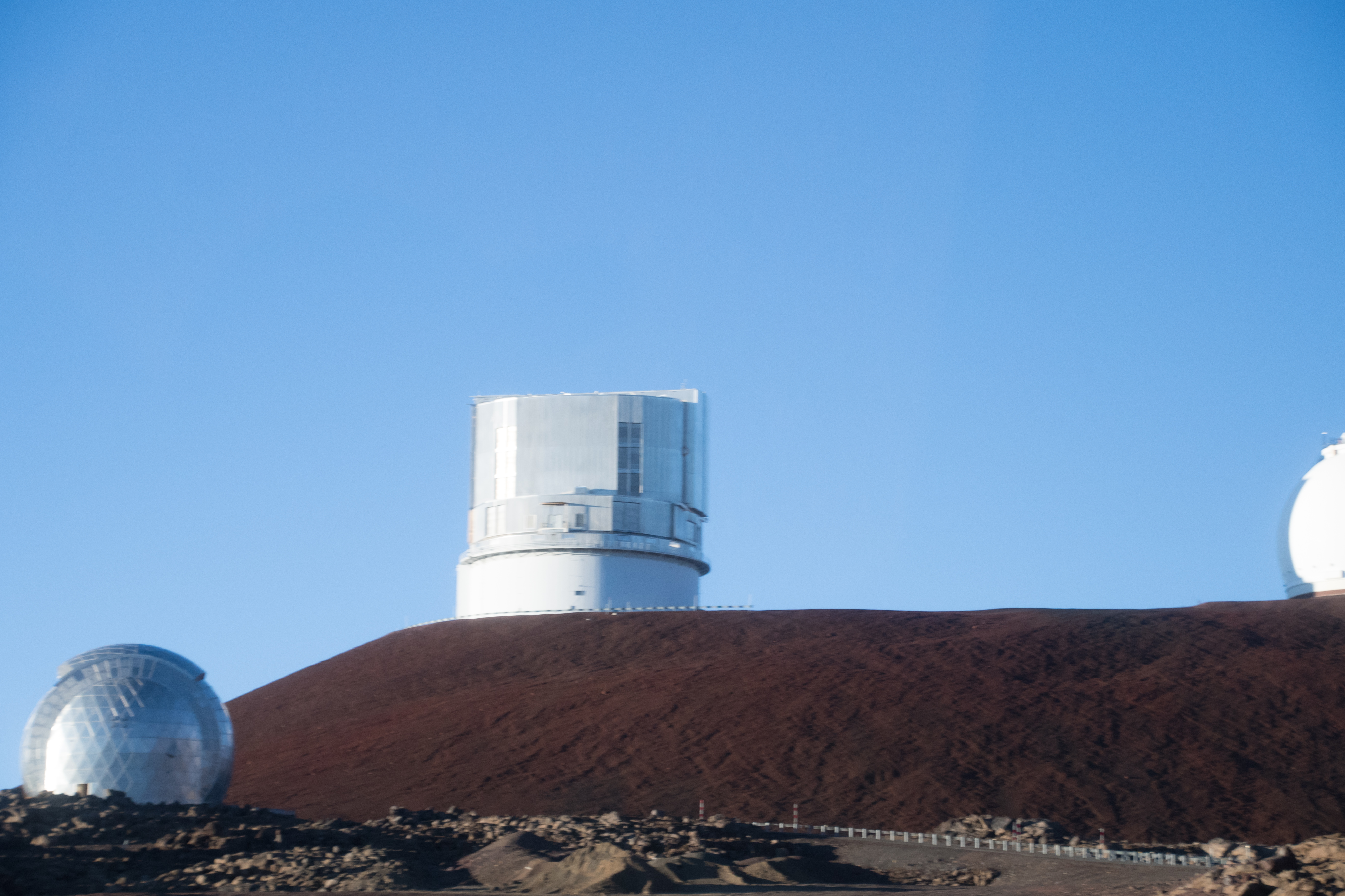 On the drive up, Japan's 8.2 meter Subaru telescope is visible in the middle with the CSO on the left and one of the Keck Observatory domes on the right.