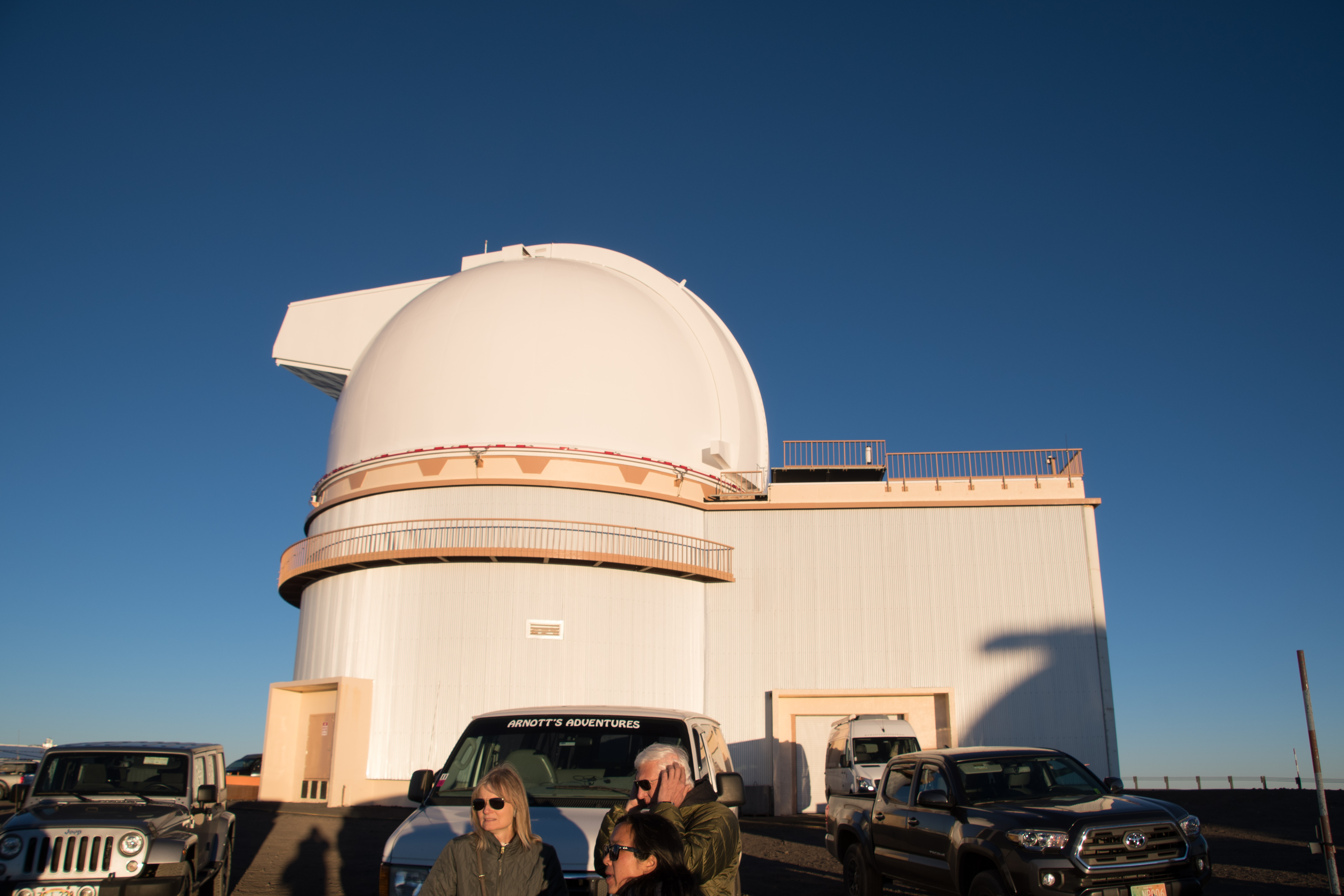 This unusually shaped white dome houses the University of Hawaii's 2.2 meter telescope. Operational in 1970, the 2.2-meter telescope was the first large telescope constructed on Mauna Kea.