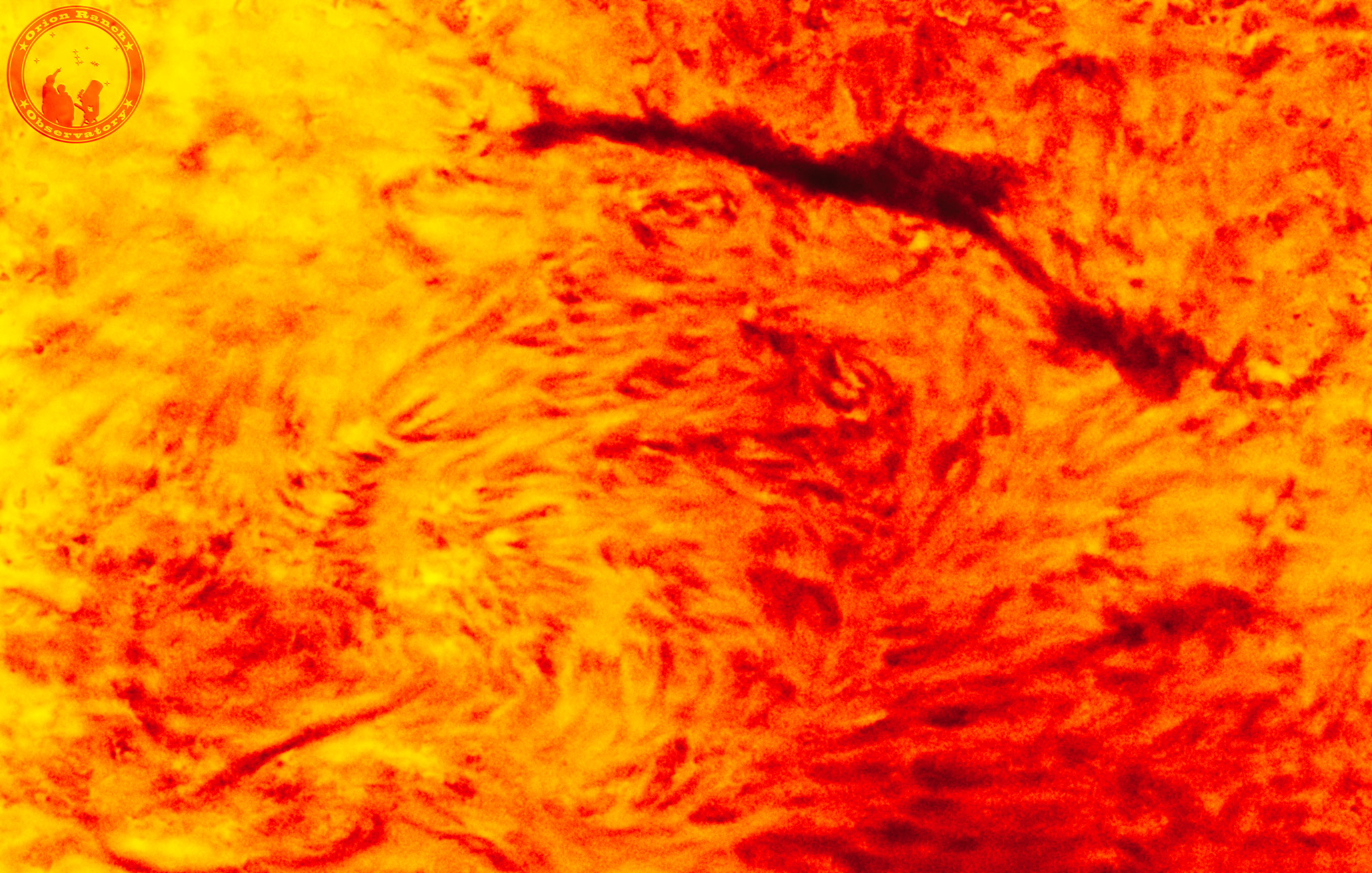 Colorized version of this image showing a solar filament in the upper right. Unfortunately all the Newton's rings didn't completely average out on this and you can see them along the left.