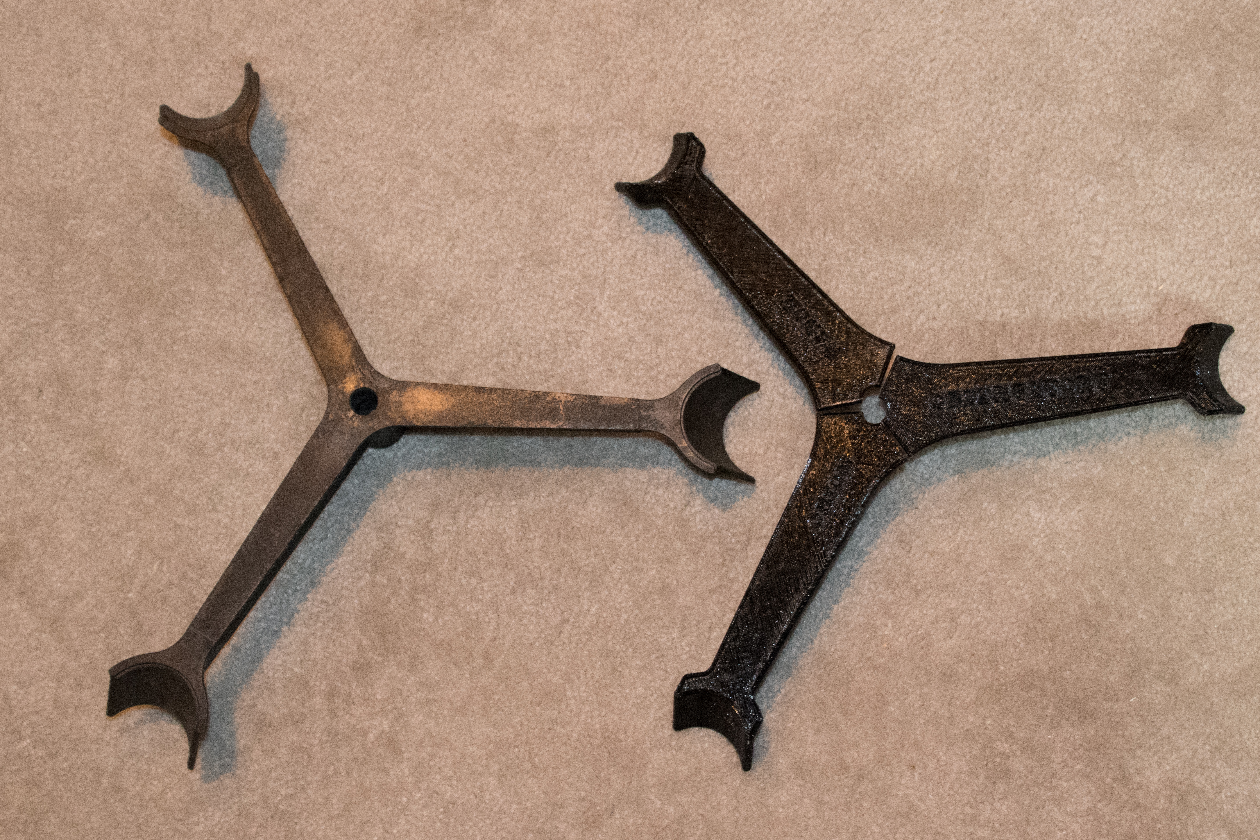 Comparison of the original and the three printed legs of the spreader.