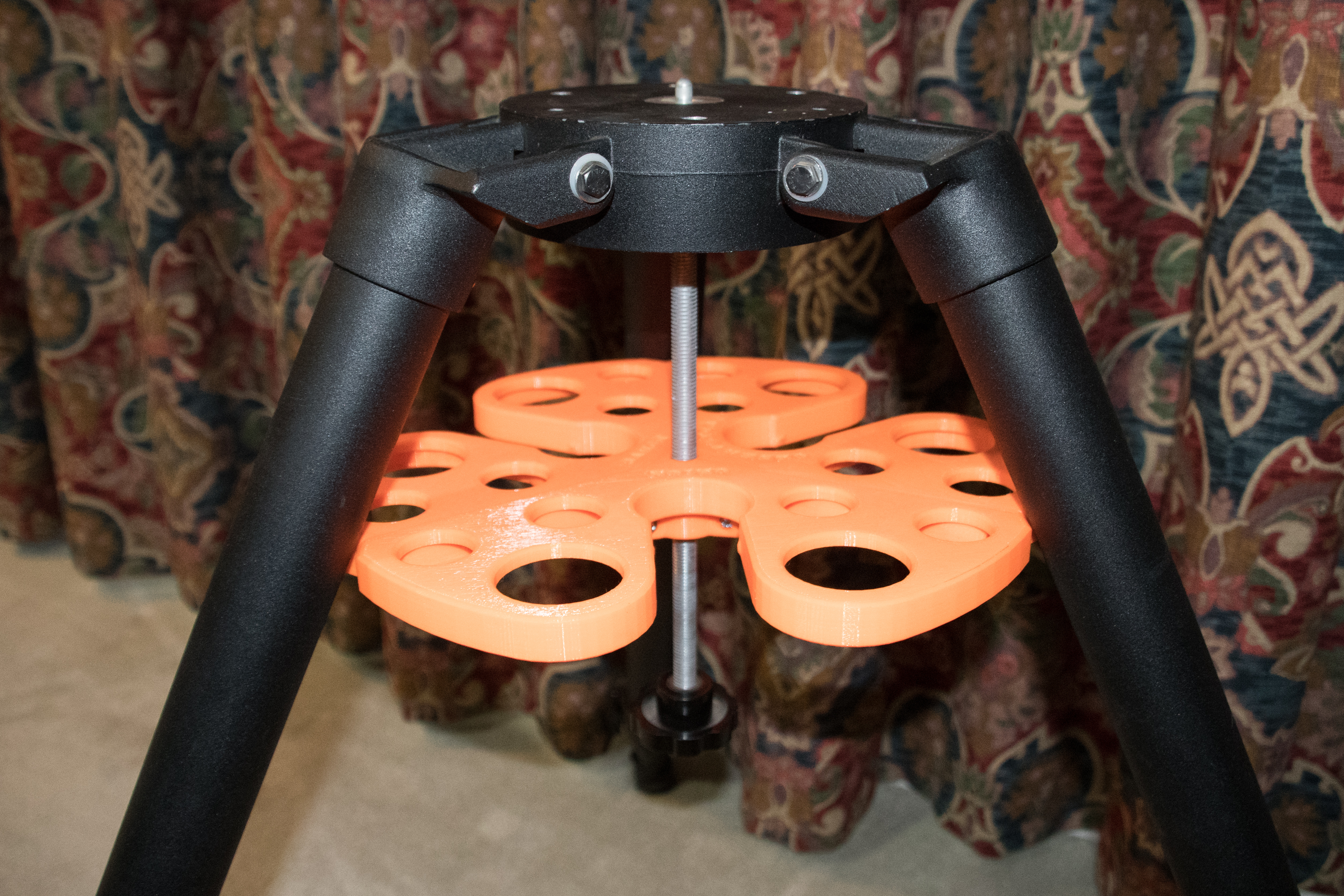 Comparison of my advanced three part leg spreader and eyepiece holder for the 8SE which fits perfectly on the GPS tripod. The 8SE tripod required a center extension to use this.