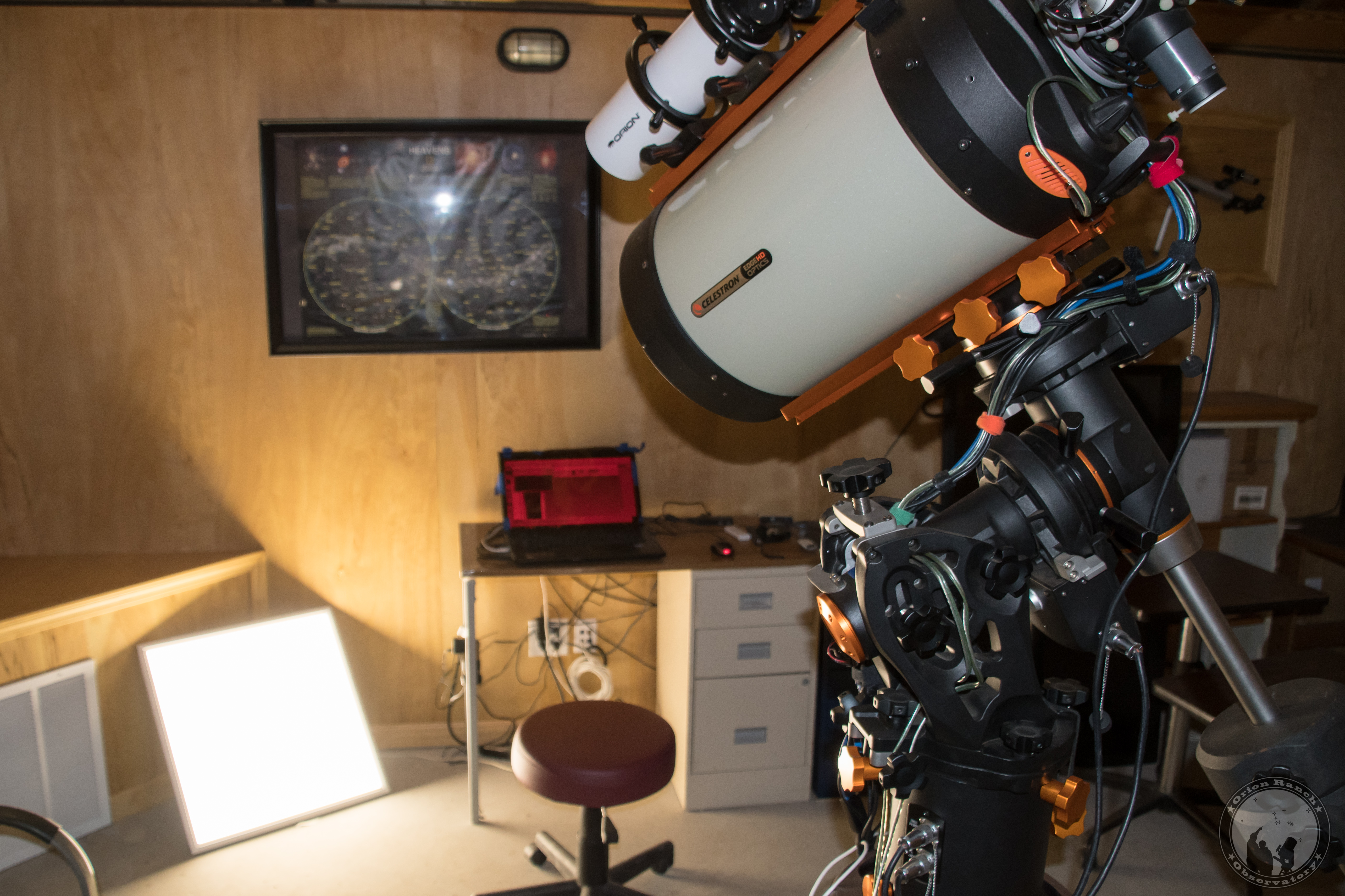 I'm initially testing with the panel just leaning against the wall. Eventually I'll build a frame for it, but for now this will have to do. With this home position, the main OTA is fully illuminated.