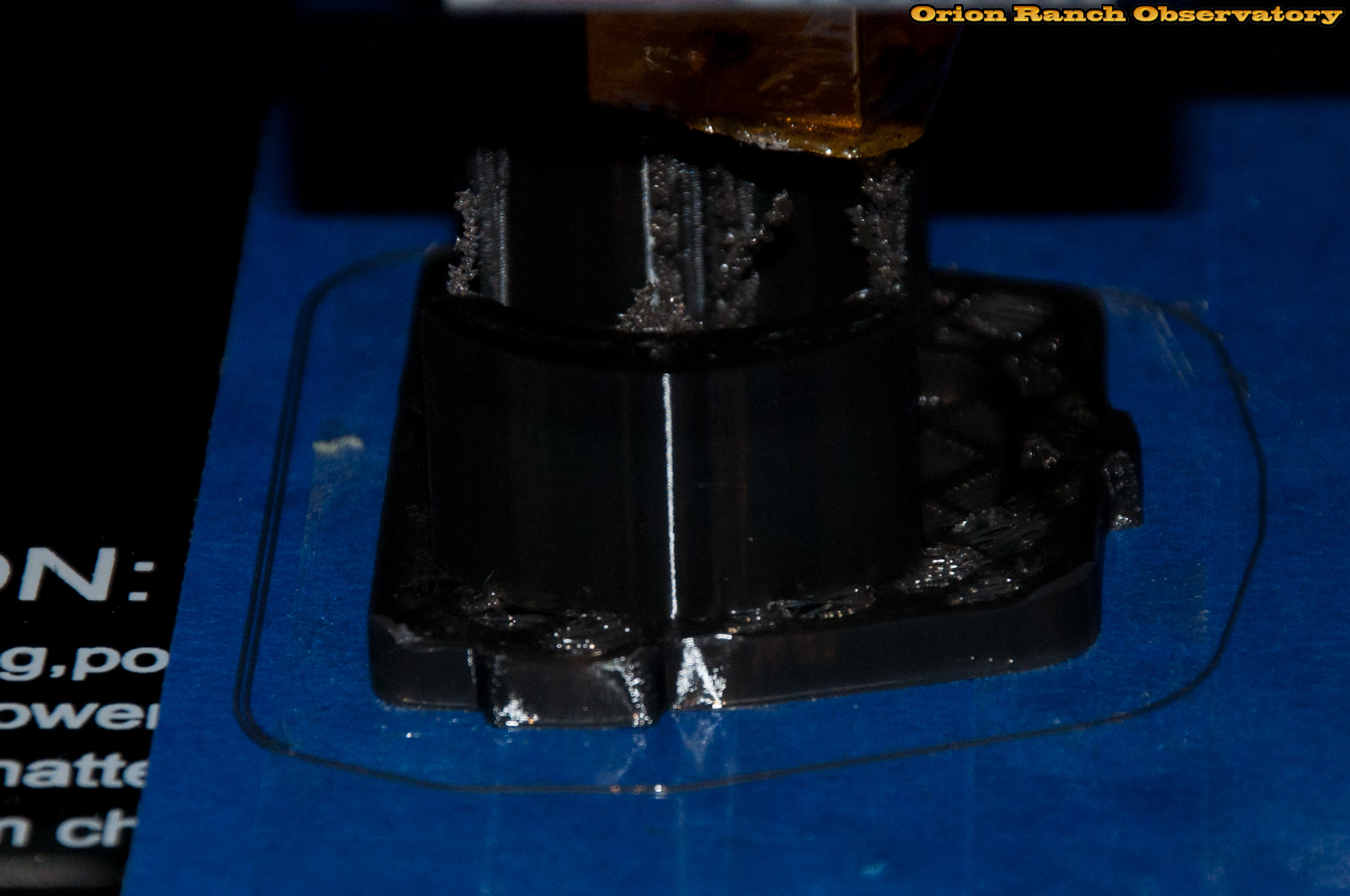 Printing the enclosure top and motor mount for the focus motor assembly on my new 3-D printer.