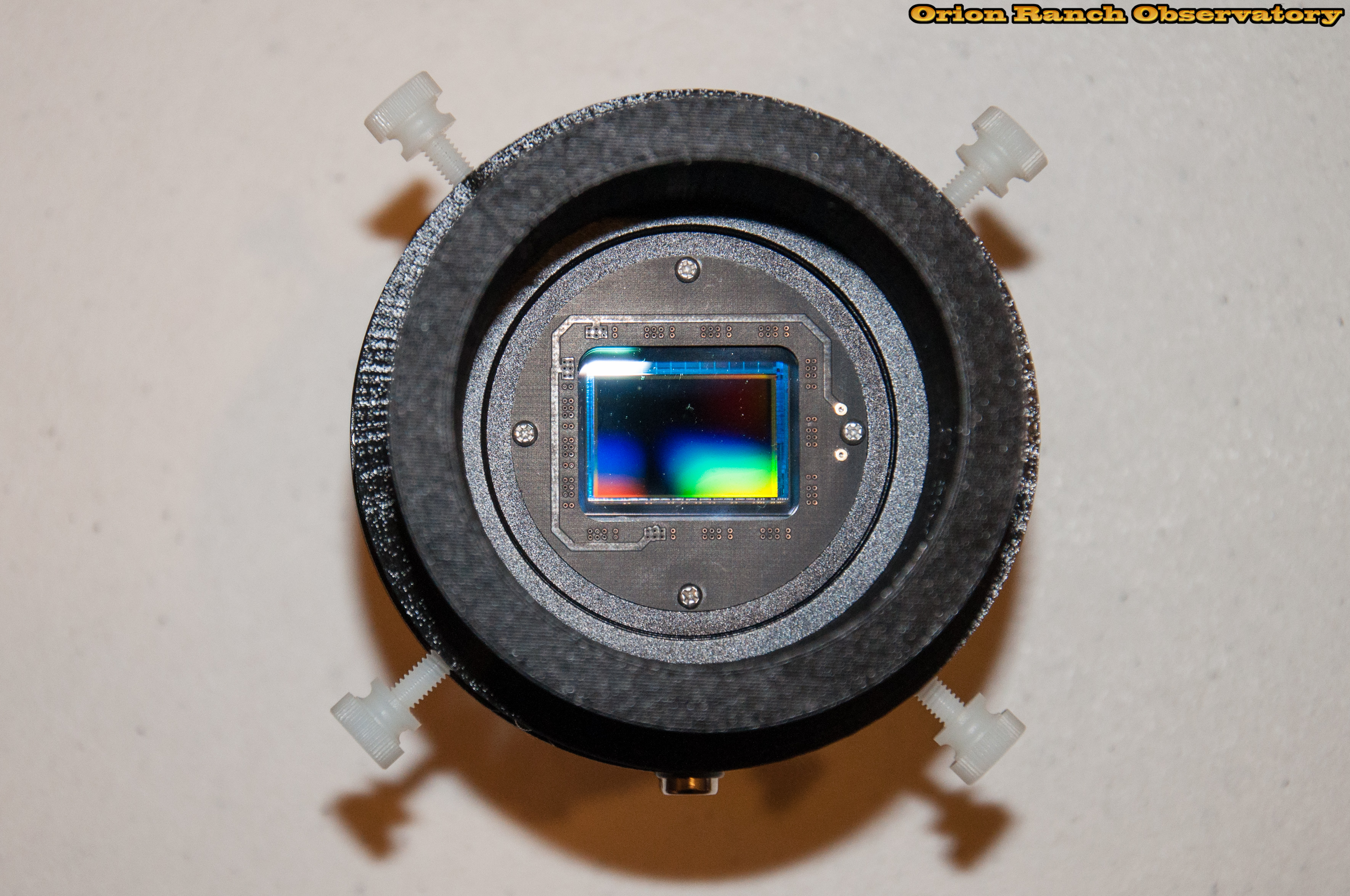 Various views of the camera and my second Tracker mounted together. The printed part works great. Note the dust already visible on the sensor window, which was clear in the initial test images.