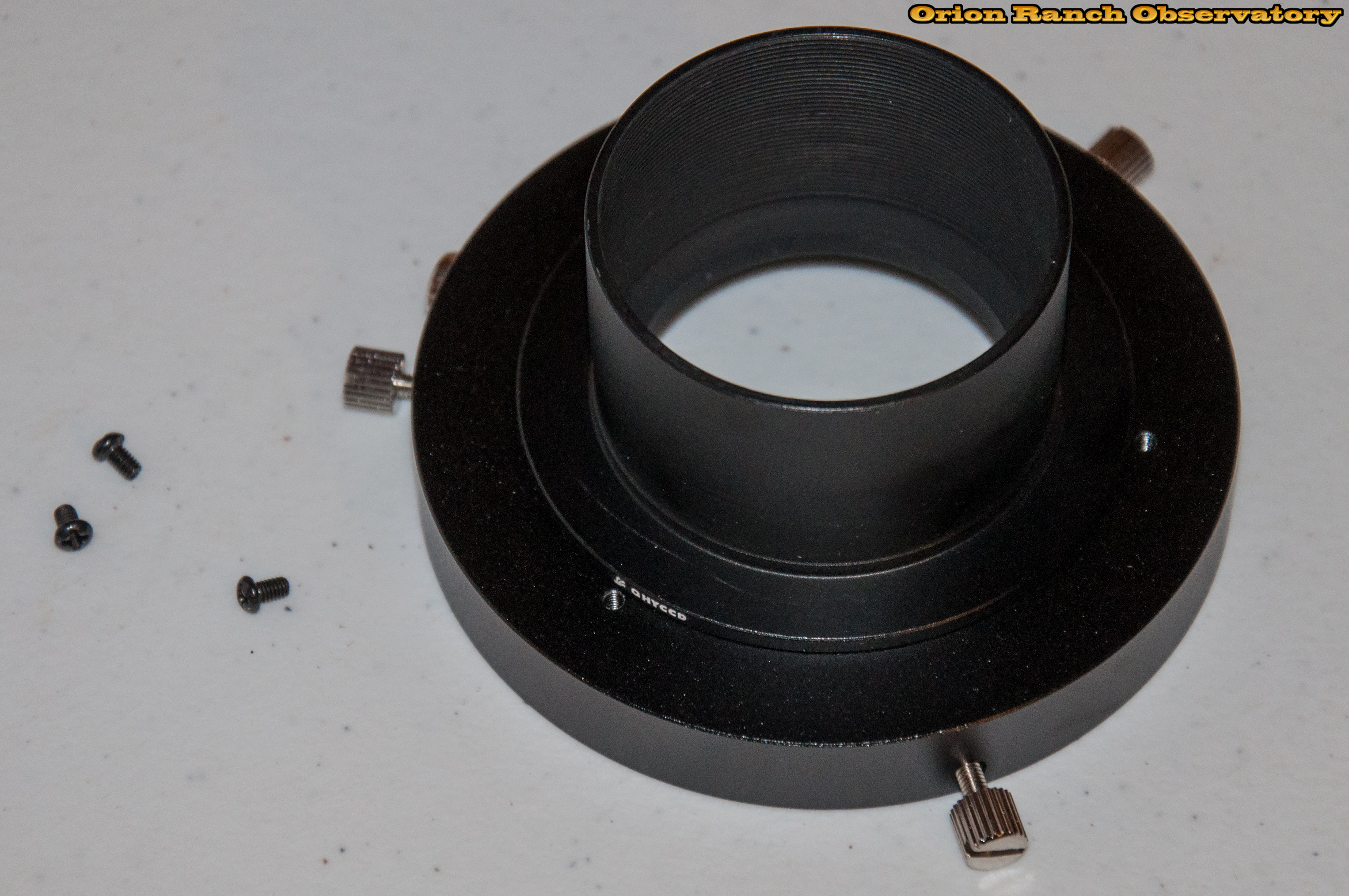 Removing the three mounting/tilt adjustment screws allows the 2" adapter to mount flush, but leaves open holes that can let light in. There's also no way to adjust the tilt of the camera, so what' s the point of the adjustment ring? Not that it SHOULD be needed. Note too that this ring is not the six hole mounting ring listed in the QHY367C manual for a filter wheel.