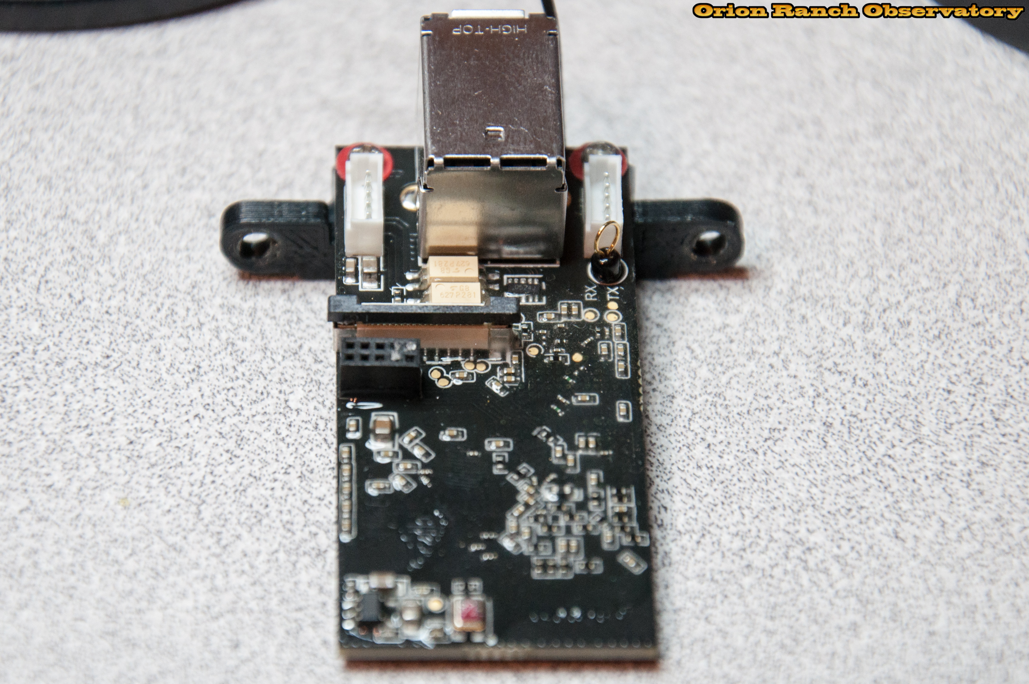 On the back are all the connectors (mostly for programming the board or other applications) and various passives under a conformal coating. The other ribbon connector is visible as the black bar above the white housing in the upper left.