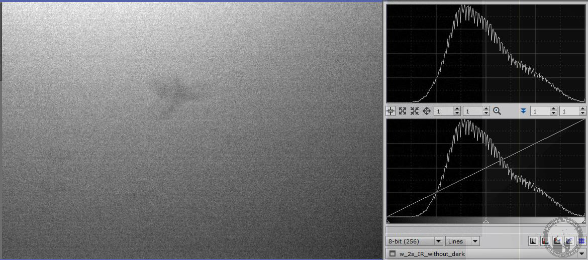 Indication of the effect of the dark library on the image and histogram. This is with the dark library disabled.