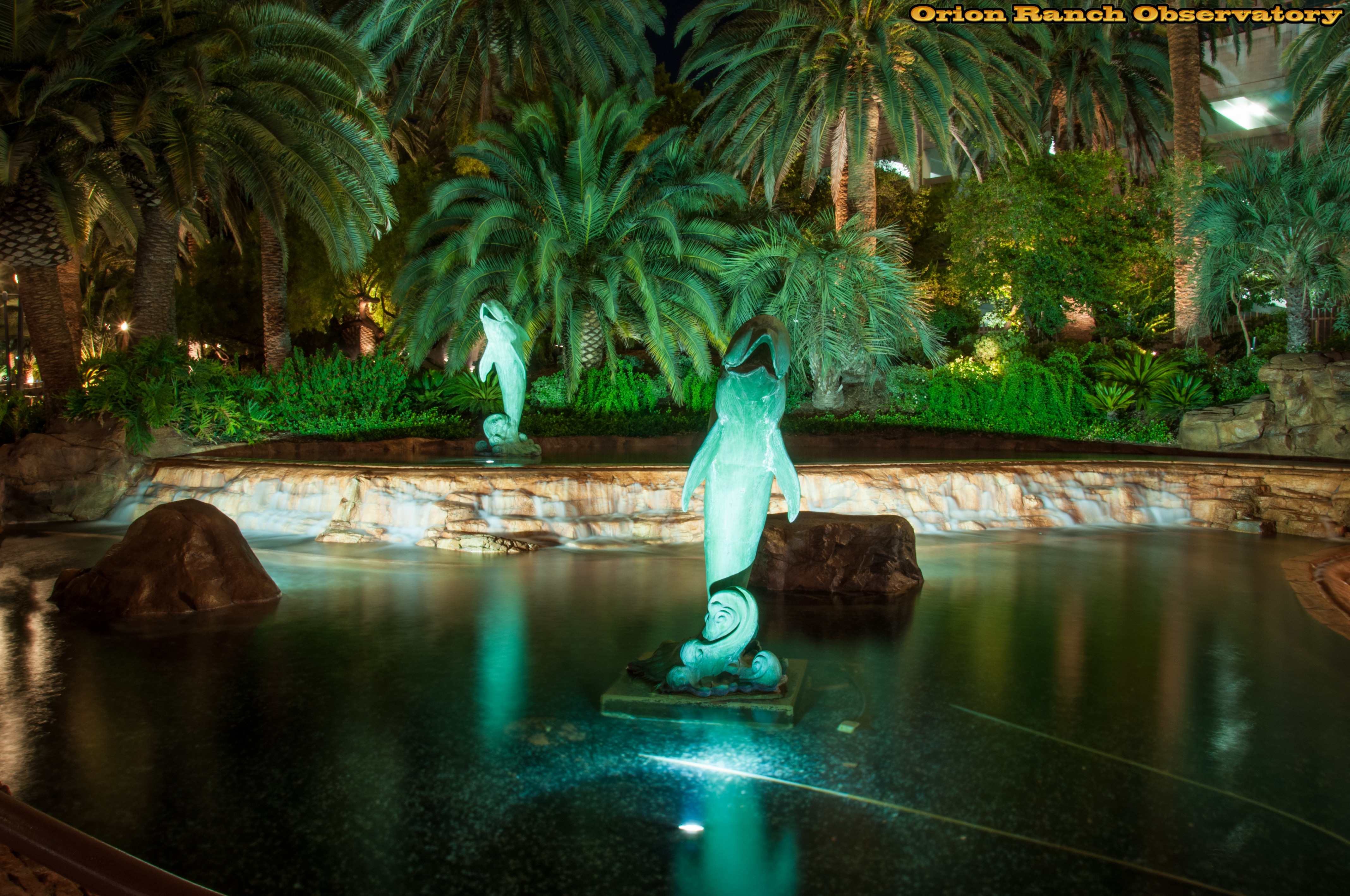 Various views of the Mirage Hotel and Casino with its waterfalls.