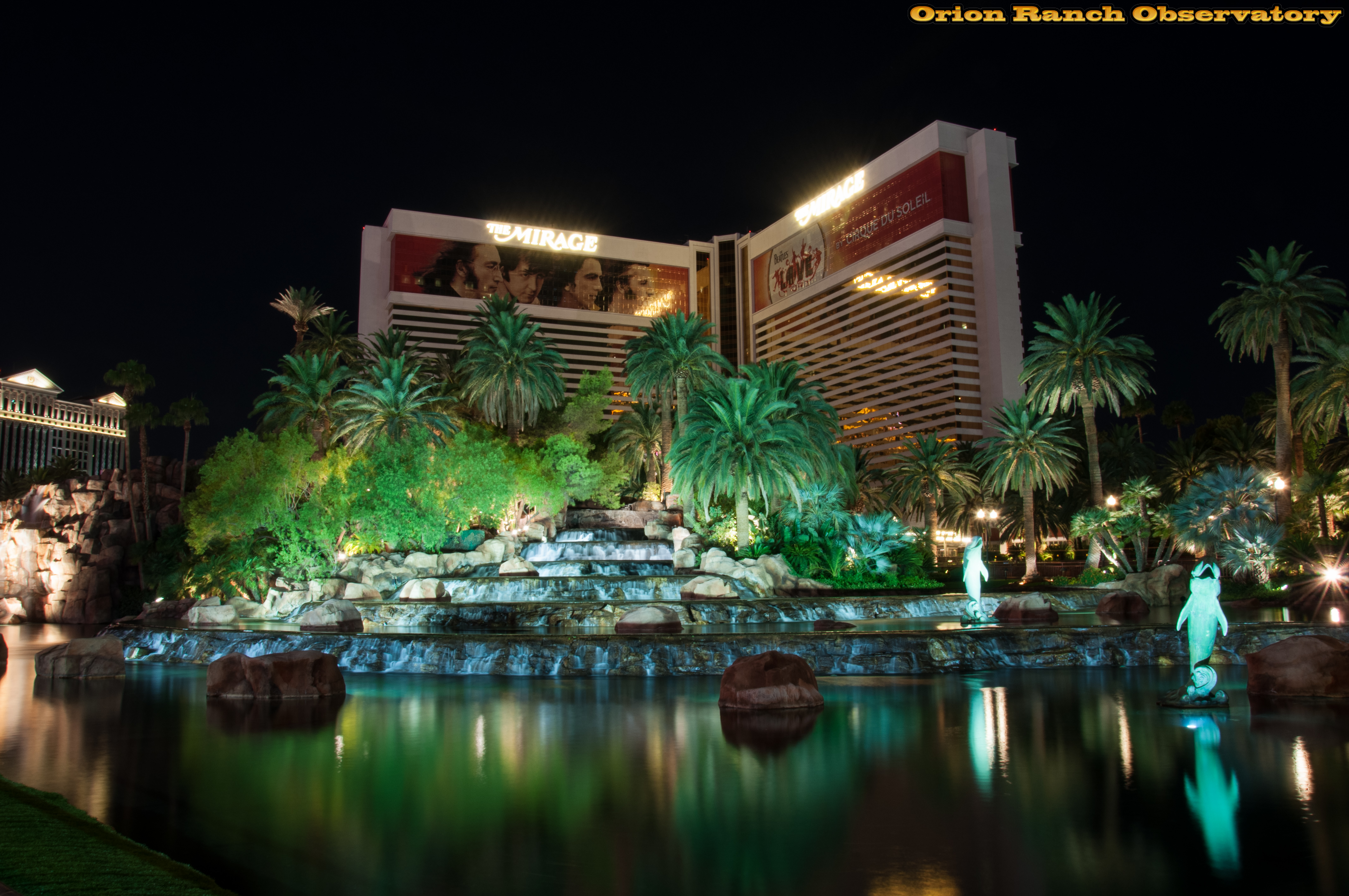 Various views of the Mirage Hotel and Casino with its waterfalls.